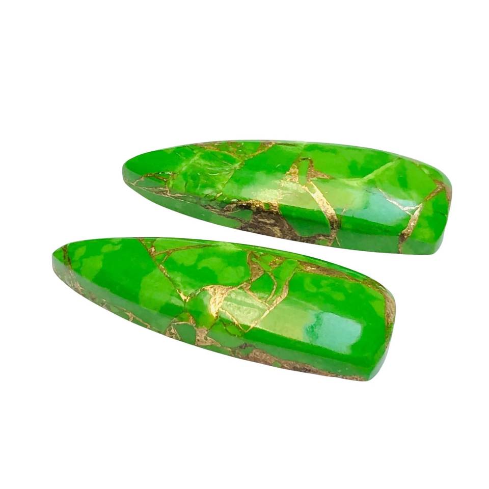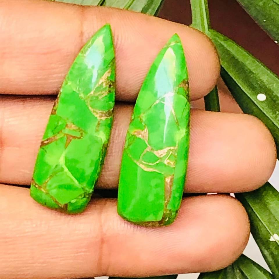 พลอยทองแดงสีเขียวเทอร์ควอยส์แบบยาวล้านล้านล้านอัญมณีทรงหลวมจับคู่หินสำหรับเครื่องประดับต่างหูทำเครื่องประดับ DIY