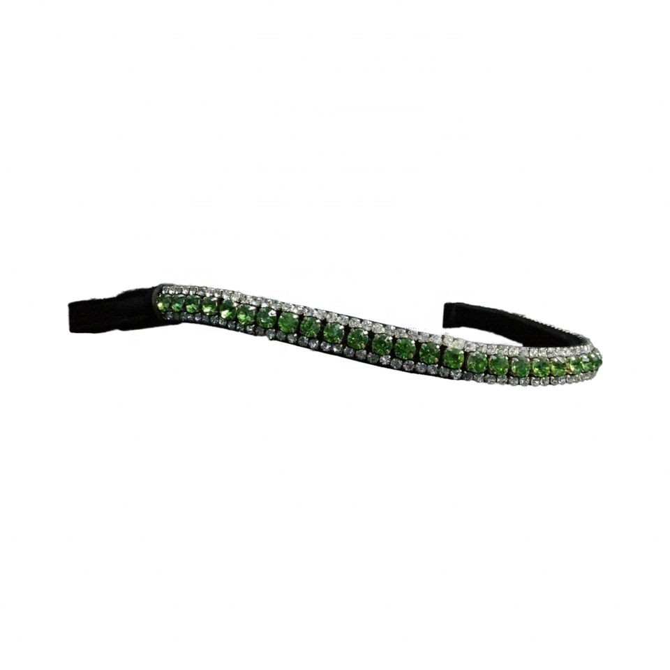 สายรัดคิ้วหนังม้าประดับคริสตัลสีเขียวสินค้าม้าพรีเมี่ยม