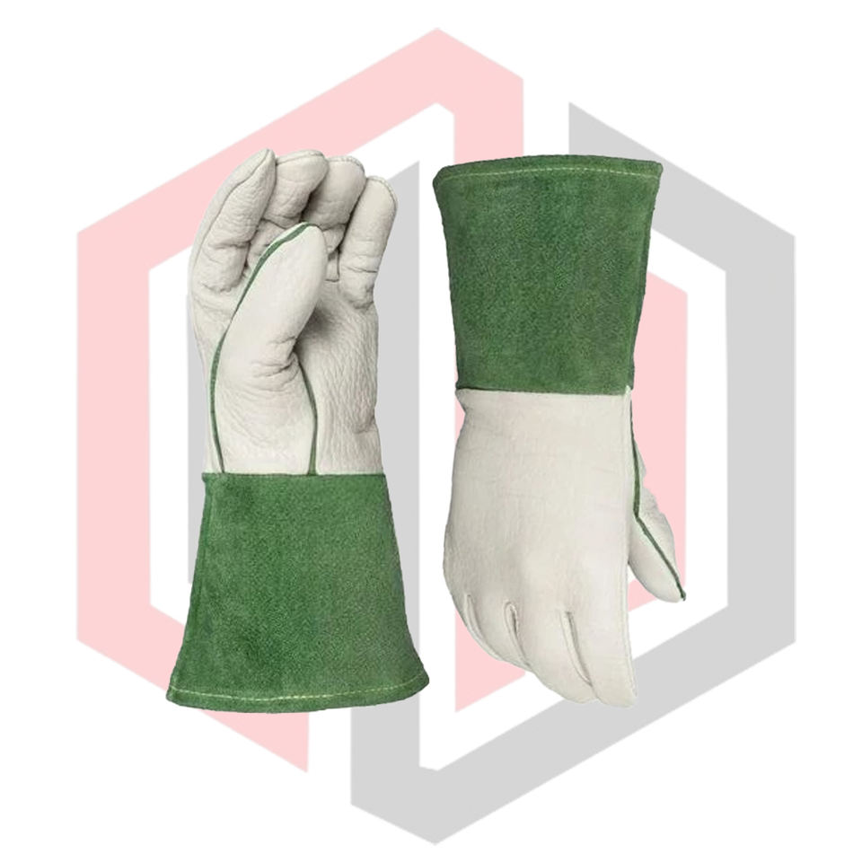 ถุงมือเชื่อมแบบมีข้อมือสีเขียว ทนต่อการฉีกขาด ป้องกันการบาด ทนความร้อน ถุงมือหนังสำหรับนักดับเพลิง งานหนัก ทนทาน ป้องกันไฟฟ้าสถิต