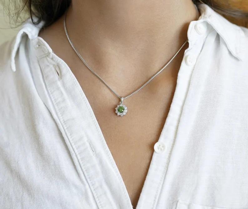จี้เพชรสีเขียว925จี้สร้อยคอชุบเงินสเตอร์ลิงสำหรับเครื่องประดับแฟชั่นผู้หญิง
