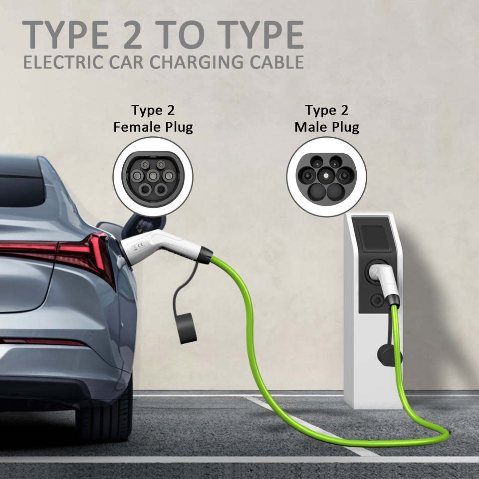 สายชาร์จรถยนต์ไฟฟ้าสีสันสดใส ยาว 15 เมตร แบบใหม่ Type 2 to Type 2 สายชาร์จมาตรฐาน IP67 ทนทาน เหมาะสำหรับรถยนต์ไฟฟ้า