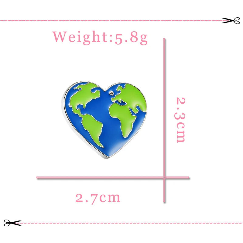 สีเขียวหัวใจโลกแผนที่โลกป้ายหมุดเข็มกลัดหมวกเสื้อผ้ากระเป๋าเคลือบพิน Travel สัญลักษณ์ที่ระลึก Unisex เครื่องประดับของขวัญ
