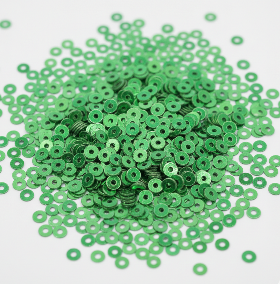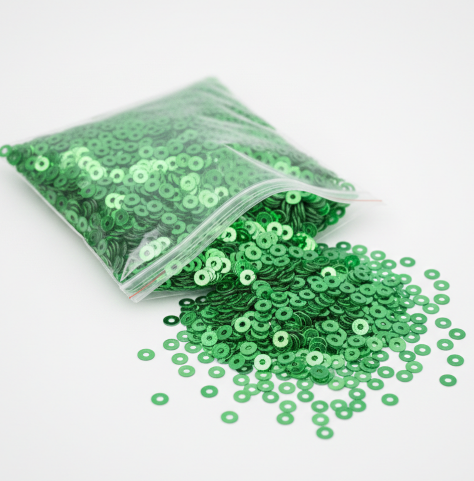กลิตเตอร์โพลีเอสเตอร์สีเขียวรักษ์โลกแบบหลวมๆ สำหรับตกแต่งเสื้อผ้าและสิ่งทอ