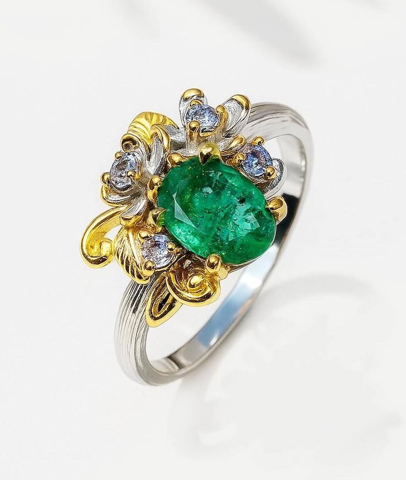 Keyword:Green Emerald Flower Ring Crafted For Elegant Floral Wear Rich Green