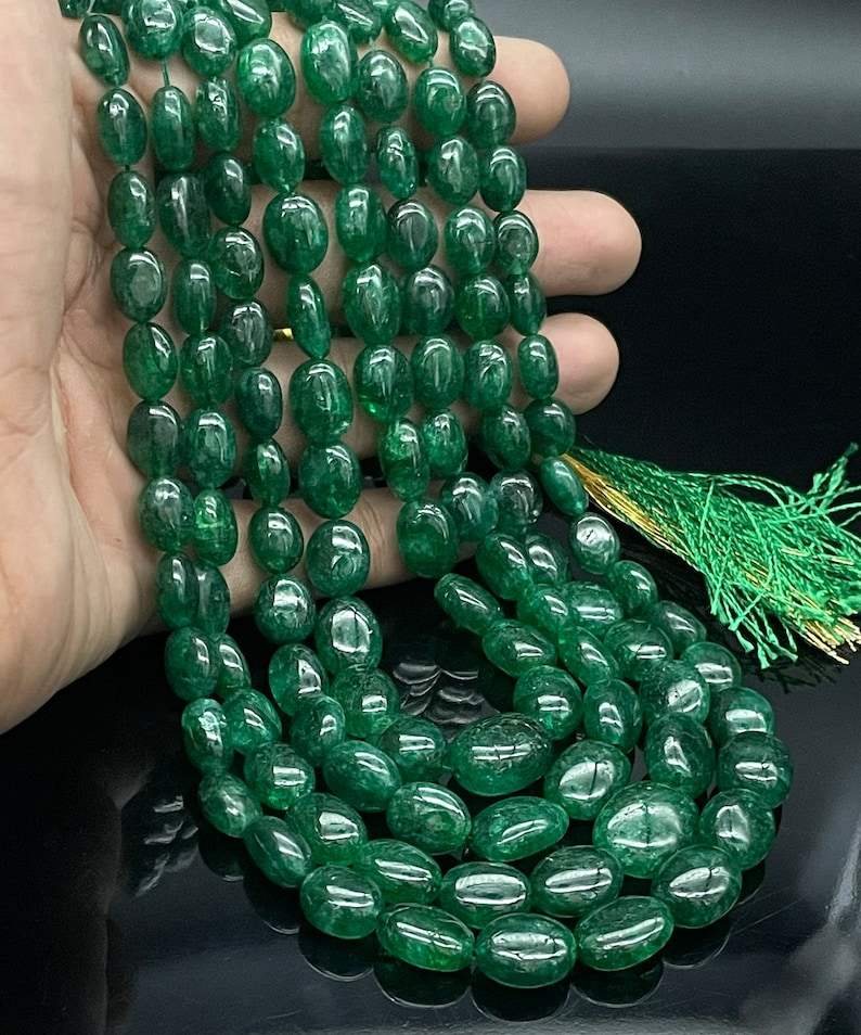 สร้อยคอประดับลูกปัดสีเขียวมรกต Zambian