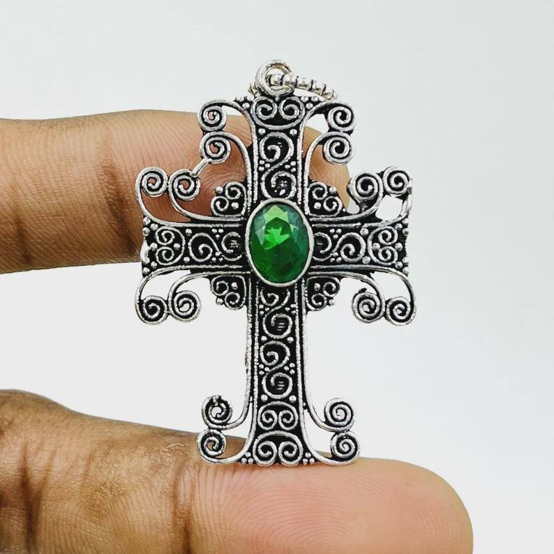 คำหลัก:จี้มรกตสีเขียวประดับด้วยพลอยมรกตสีเขียวระยิบระยับ