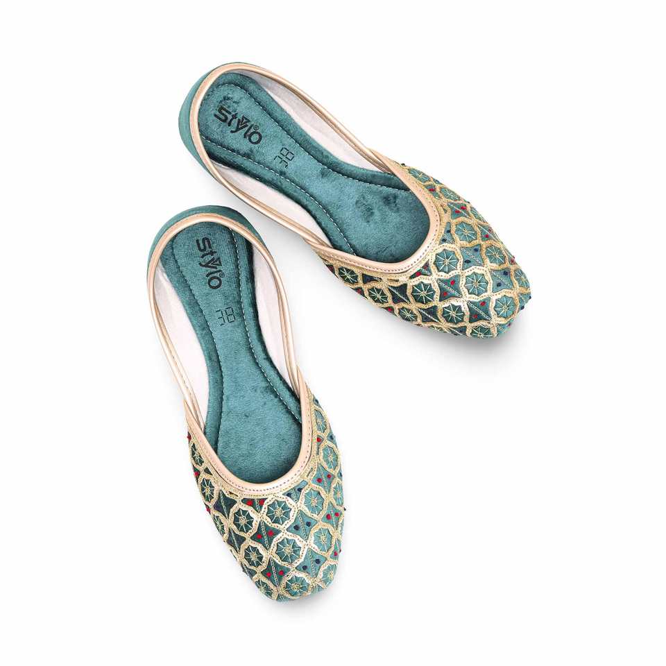 รองเท้าส้นเตี้ยสีเขียวแฟนซี khusa EC8449ผู้หญิง