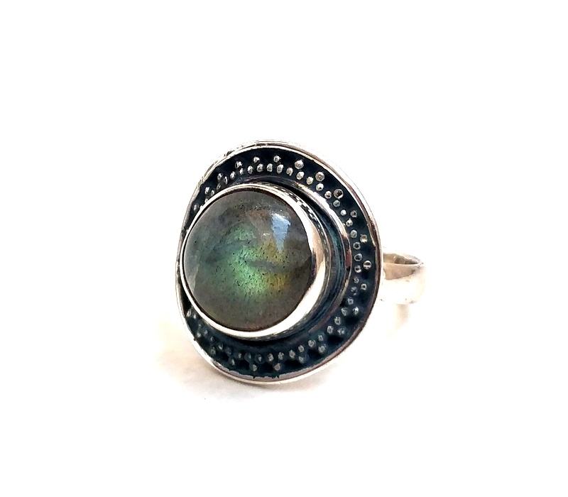 สีเขียวไฟ Labradorite แหวนเงินที่มีคุณภาพการส่งออกเงินสเตอร์ลิง92.5ทำด้วยมือแหวนพลอย