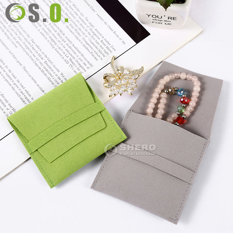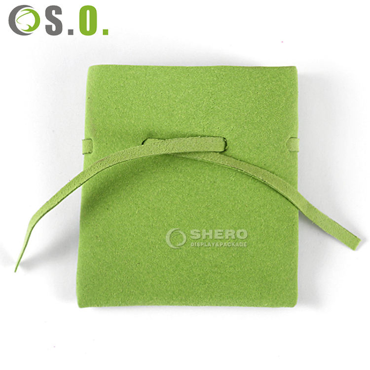 กระเป๋าใส่เครื่องประดับต่างหูสร้อยคอไมโครไฟเบอร์แบบหูรูดสีเขียว
