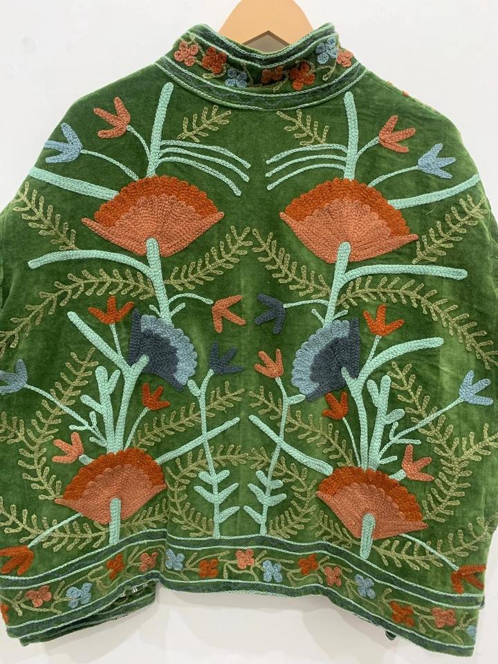 Product name:Green Floral Velvet Suzani Embroidered Short Jacket