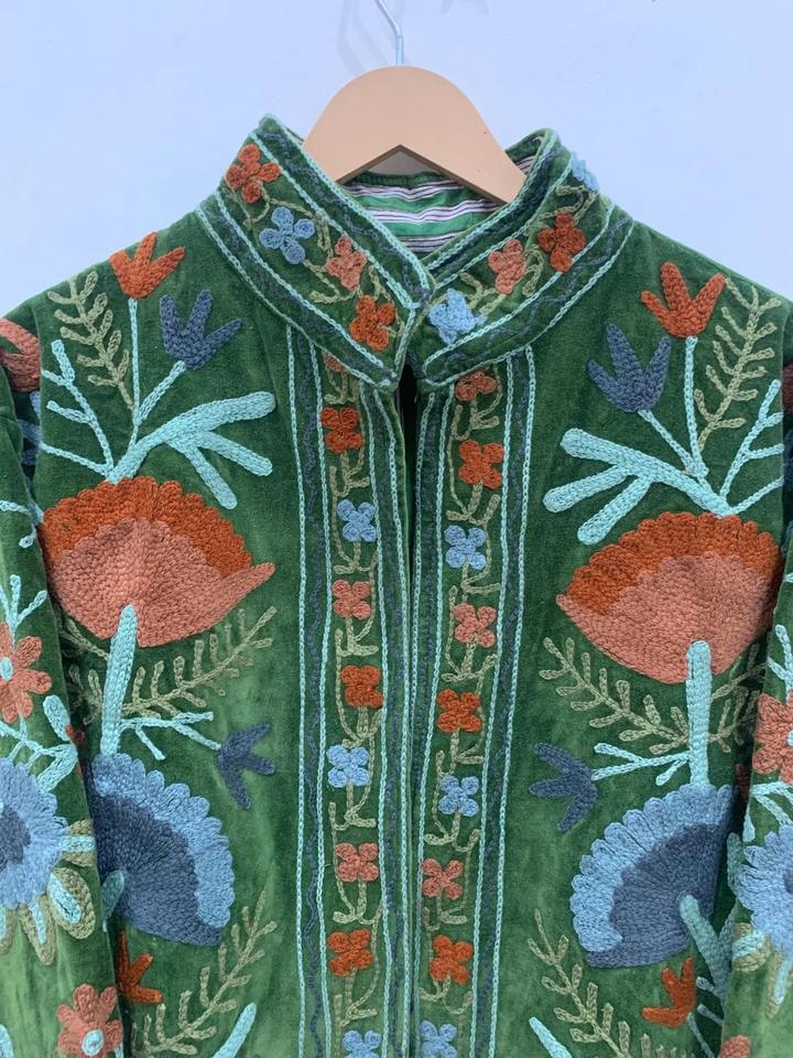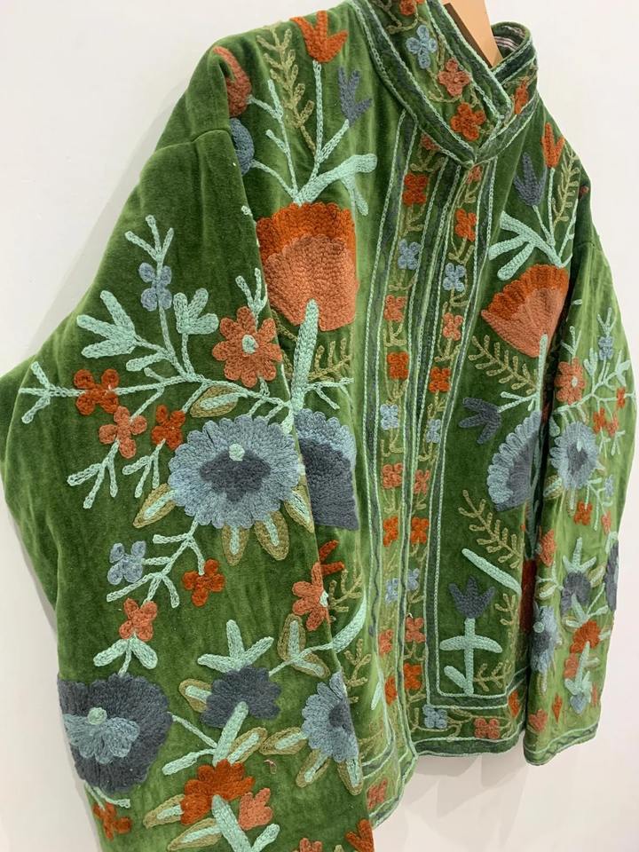 Green Floral Velvet Suzani Embroidered Short Jacket