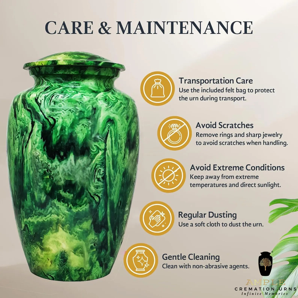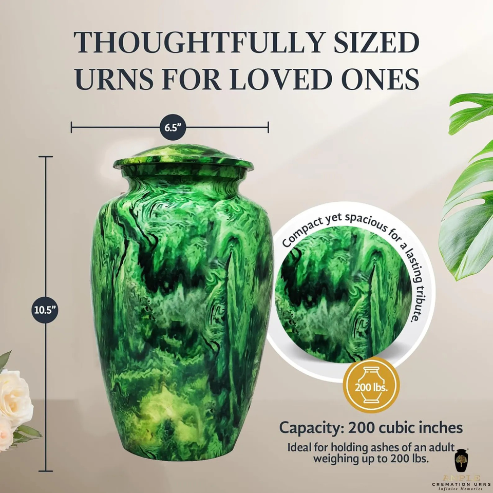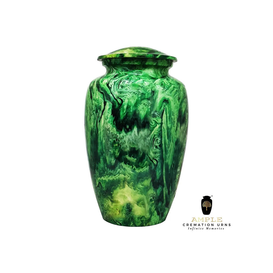 Green Forest Metal Cremation Urn for Ashes Nature Inspired Adult Memorial Urn Vibrant Swirl Funeral Tribute Keepsake
