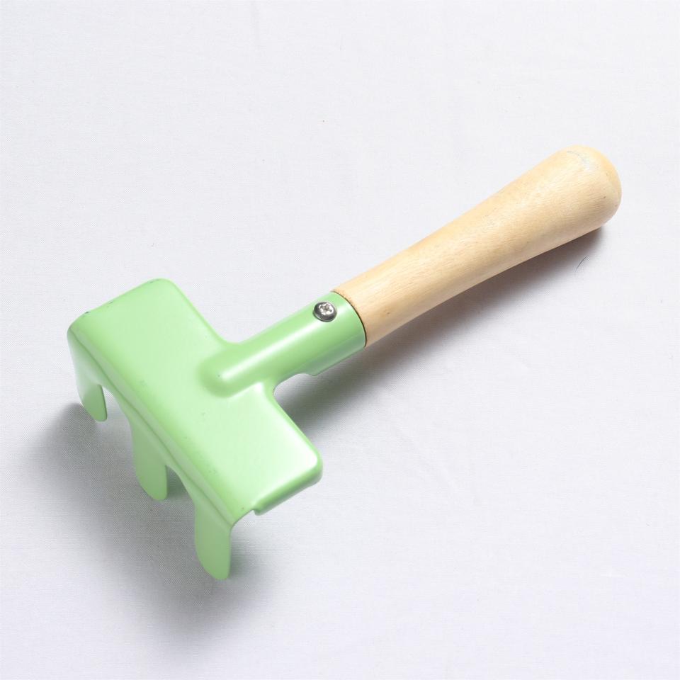 คราดสวนสีเขียวพร้อมด้ามไม้ เครื่องมือพลาสติกน้ำหนักเบาสำหรับเด็ก ปลูกผักในสวน ใช้กลางแจ้ง