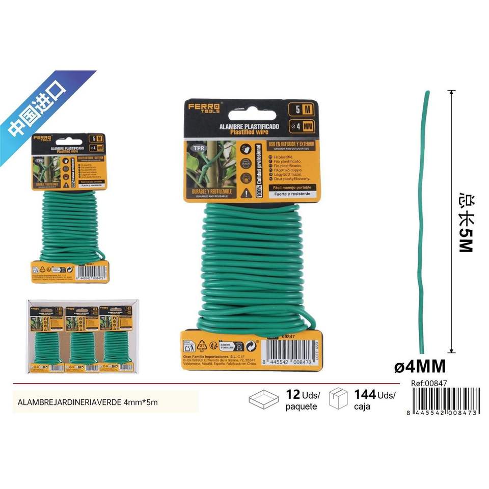 ลวดทำสวนสีเขียวขนาด4มม. X 5ม. นำกลับมาใช้ใหม่วัสดุพีวีซีและกระดาษสำหรับทำสวนในบ้าน