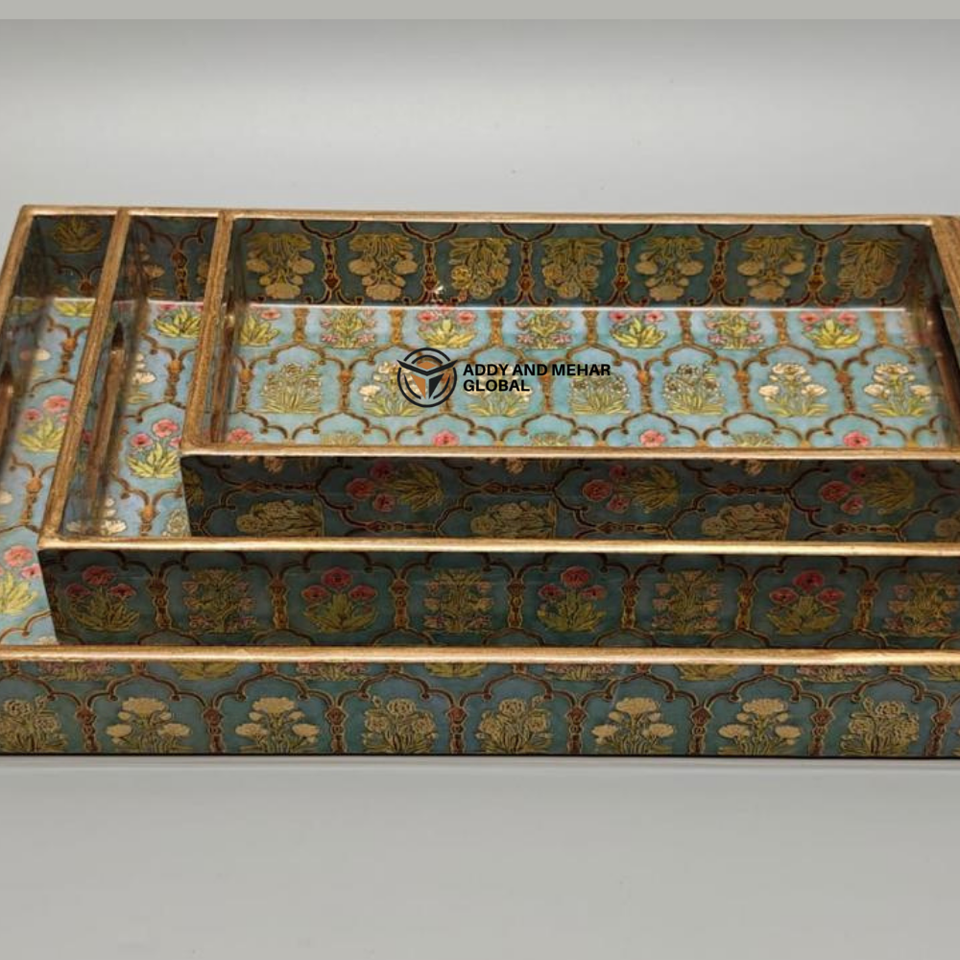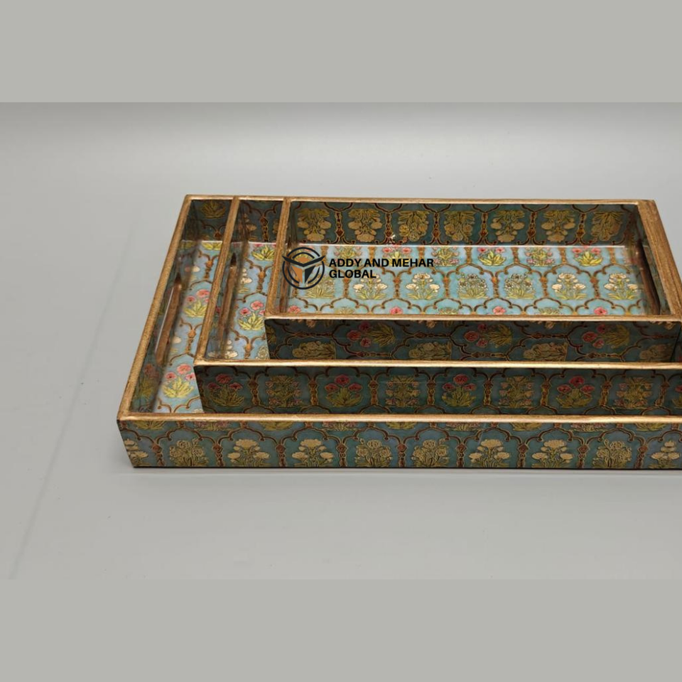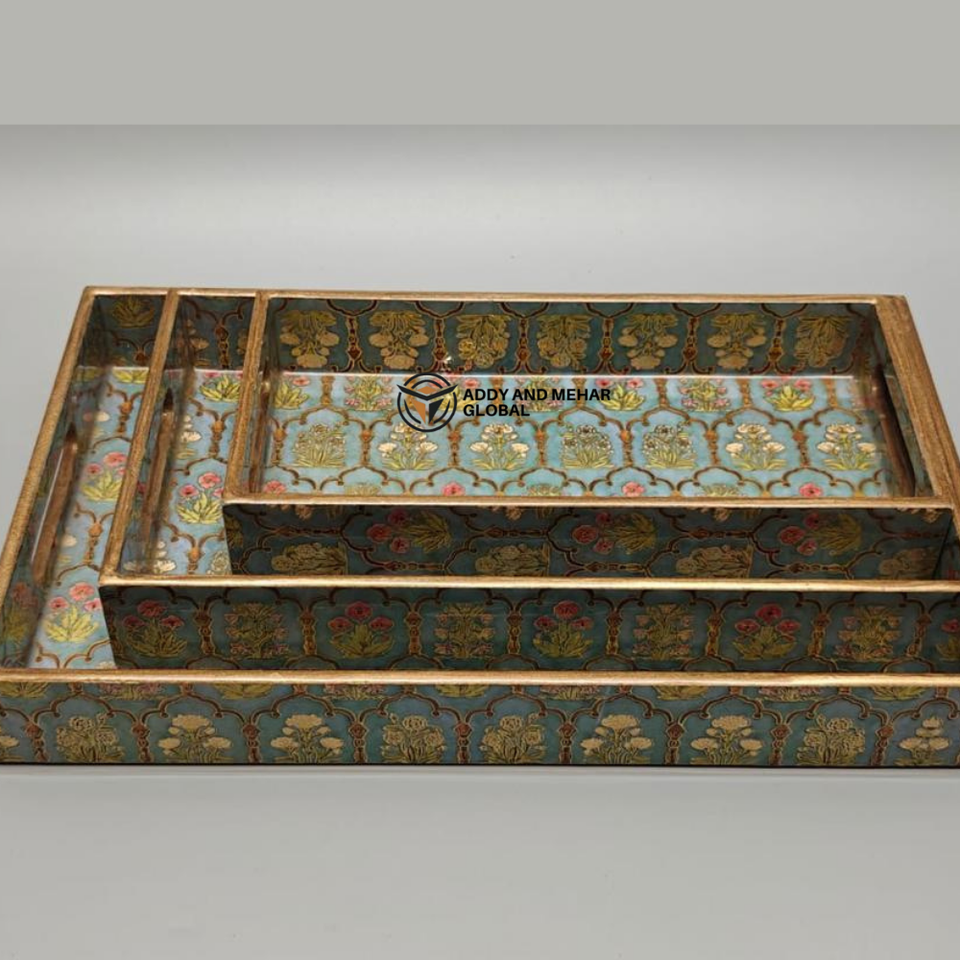 Green Geometric Enamel Serving Tray Set of 3 – Modern Luxury Food-Safe MDF & Paper Nesting Trays for Kitchen Dining & Home Decor