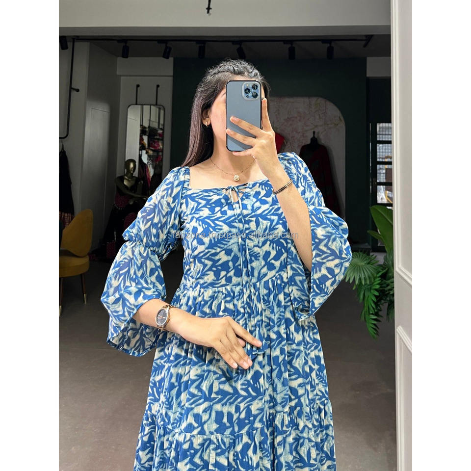 ชุดสีเขียว georgette มีตัวเลือกการพิมพ์ที่หลากหลาย