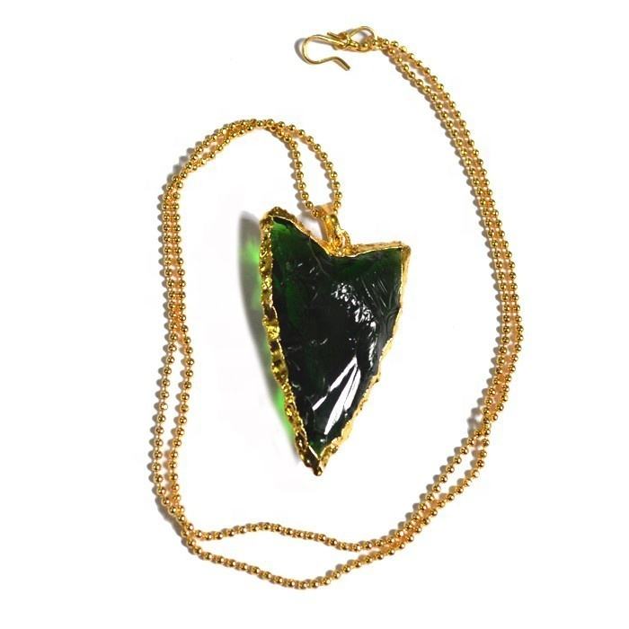 แก้วสีเขียวสร้อยคอหัวลูกศรแบบสุ่ม: ซื้อจากสร้อยคอหัวลูกศรอาเกตธรรมชาติ