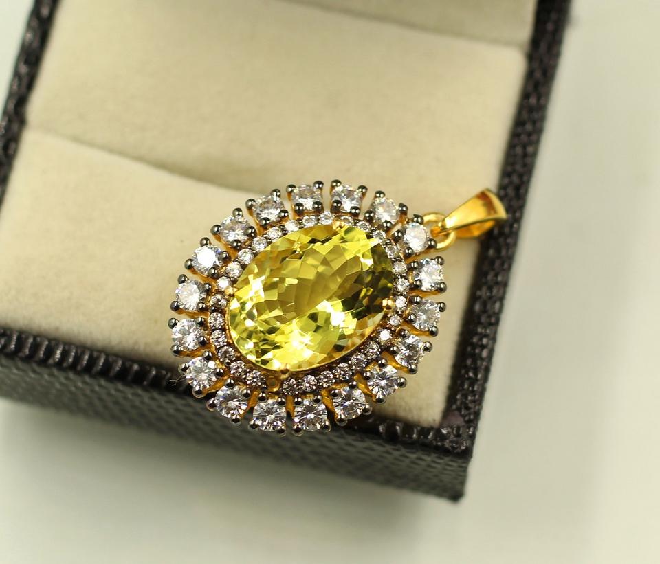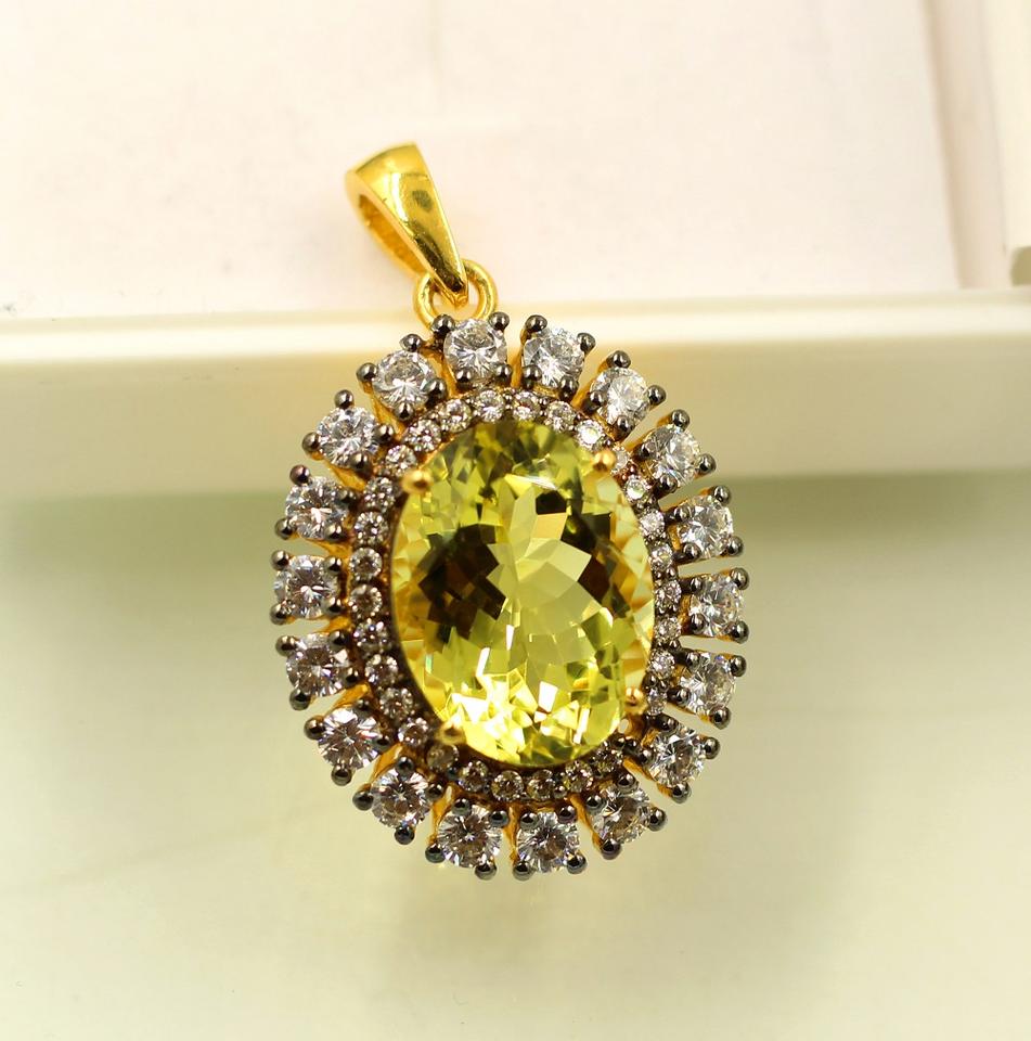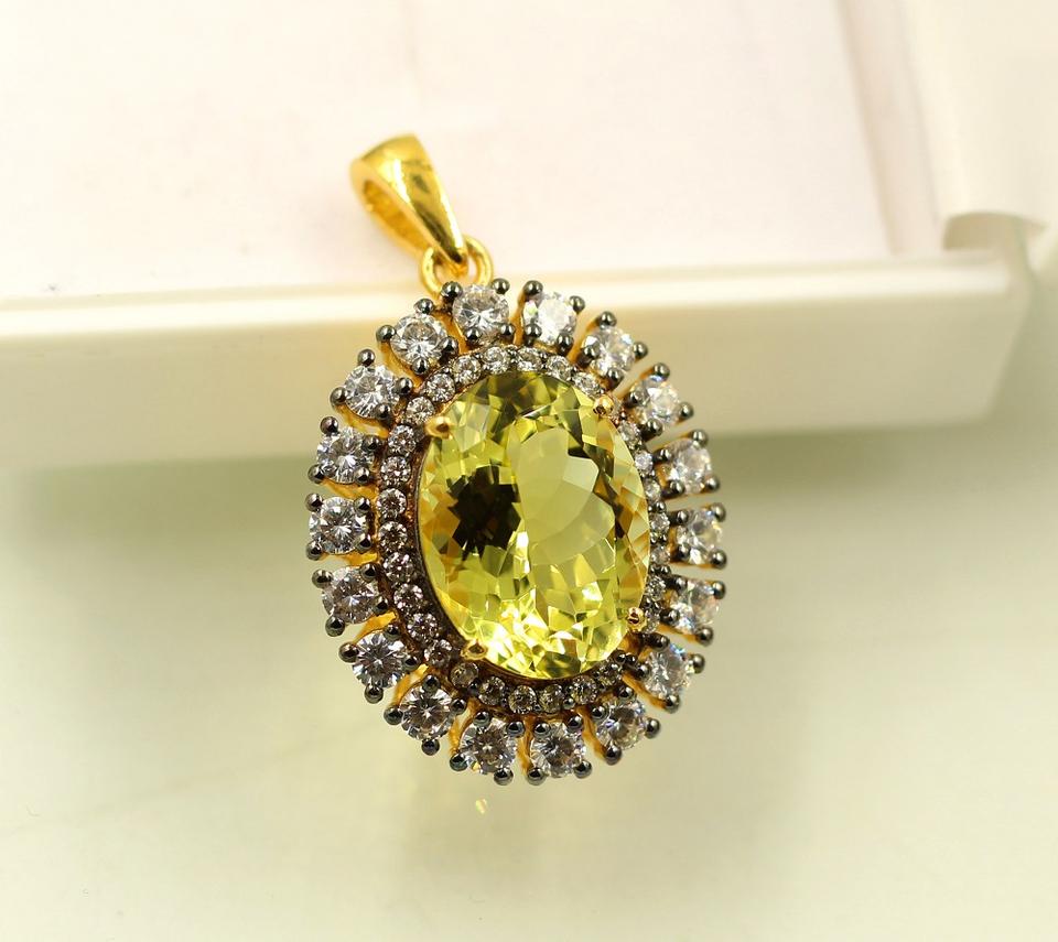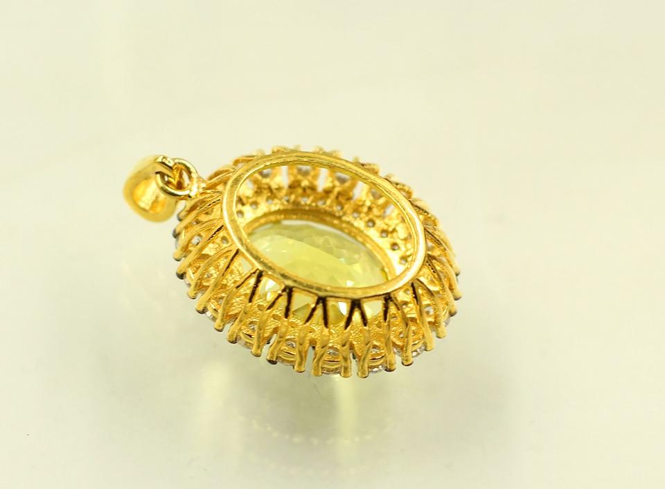 จี้เพชรควอตซ์สีเขียวทองคำแท้ 925 เงินสเตอร์ลิงชุบทอง ดีไซน์เรียบหรู สไตล์ศาสนา สำหรับผู้หญิง