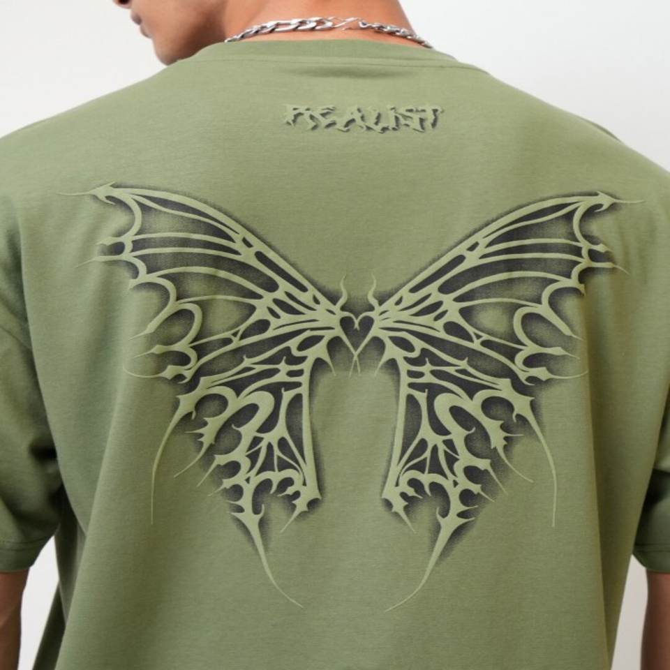 เสื้อยืดแขนสั้นโอเวอร์ไซส์พิมพ์ลายกราฟิกสีเขียวพิมพ์ลายแขนสั้นโอเวอร์ไซส์ใส่สบายเสื้อยืดผู้ชายผลิตในอินเดีย
