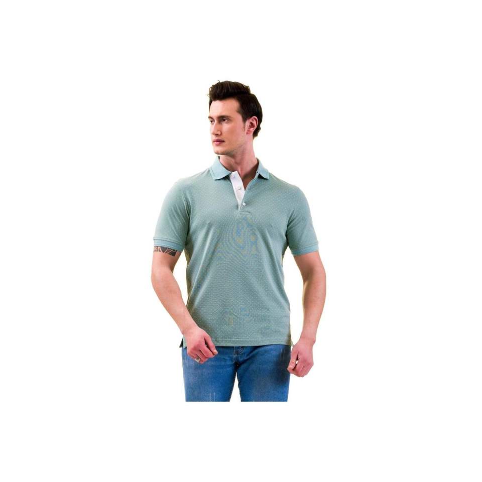 เสื้อยืดคอโปโลแขนสั้นสีเขียวสีเขียวสีเขียวลายจุดสีขาว