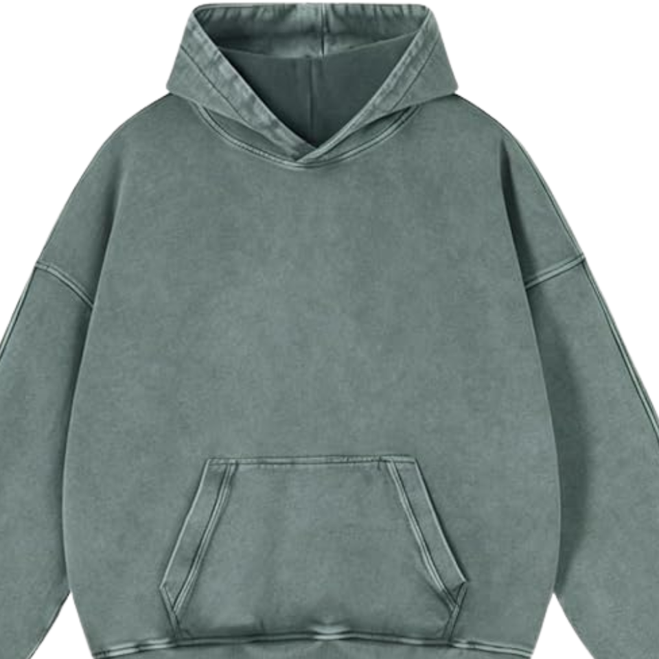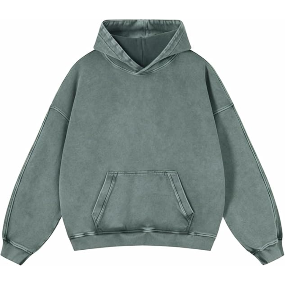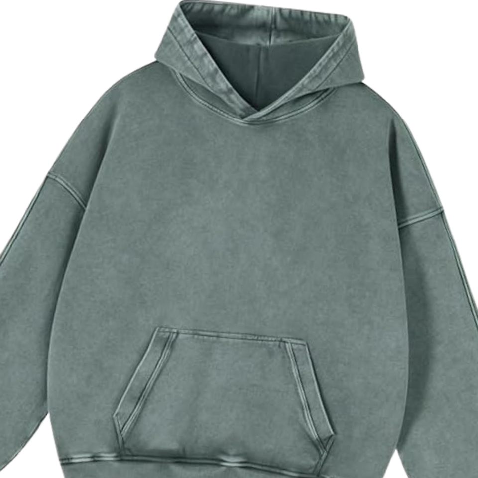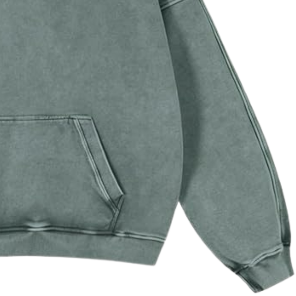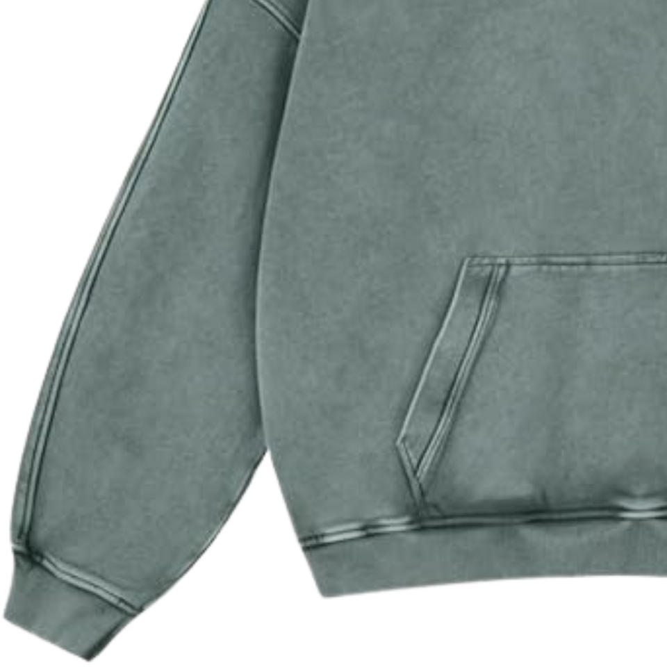 เสื้อฮู้ดดี้สีเขียวเทาฟอกสีสไตล์วินเทจทรงโอเวอร์ไซส์ ผ้าฝ้ายฟลีซเนื้อนุ่ม สไตล์ลำลองสตรีทแวร์ เหมาะสำหรับฤดูหนาว