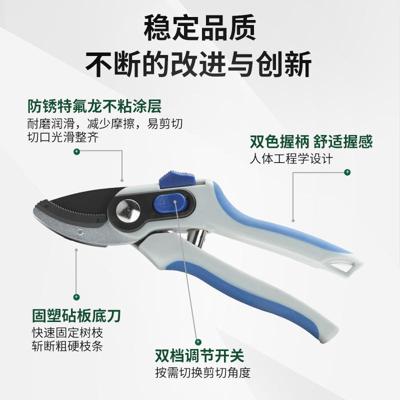 กรรไกรตัดแต่งกิ่งกรีนการ์ด ใบมีดคาร์บอนสตีลแบบบายพาสขนาด 15 มม. สำหรับทำสวนและตัดแต่งต้นไม้ผลไม้