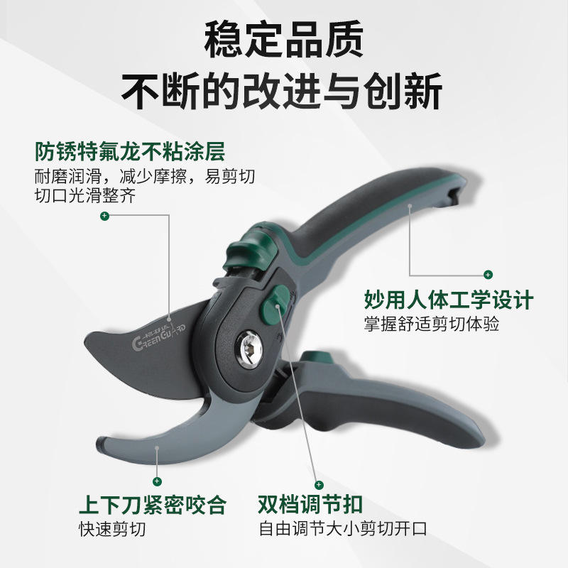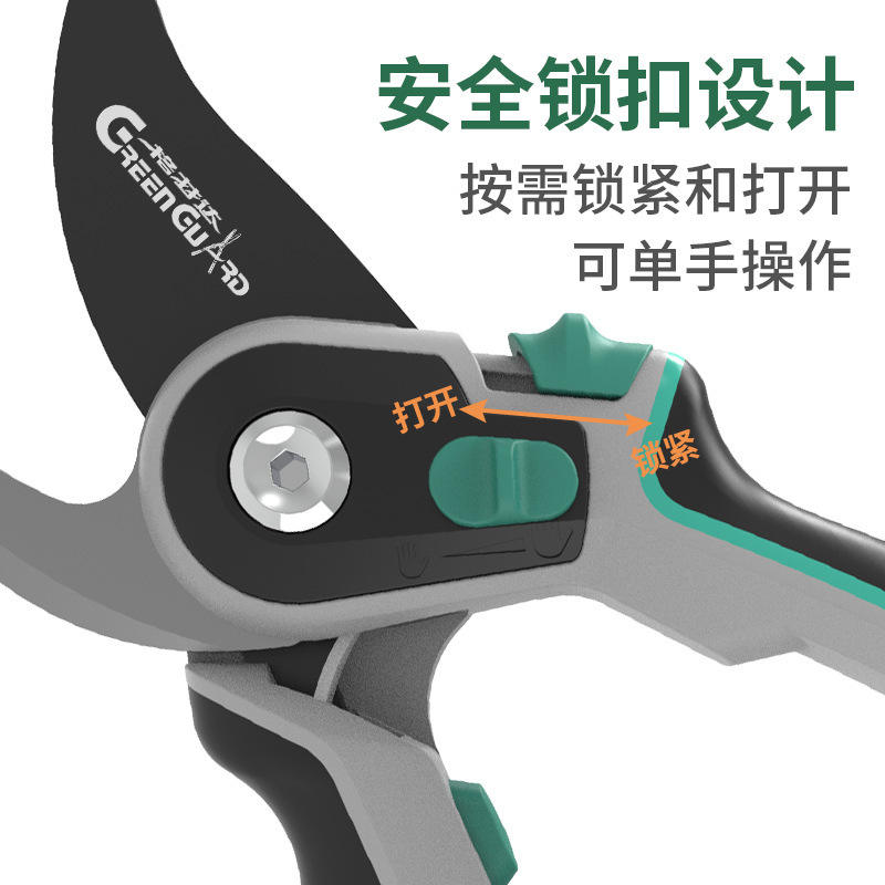 กรรไกรตัดแต่งกิ่งกรีนการ์ด GP-1336 ด้ามจับคาร์บอนสตีลแบบผีเสื้อ สำหรับต้นไม้ผลไม้ เส้นผ่านศูนย์กลางตัดแต่ง 20-30 มม.