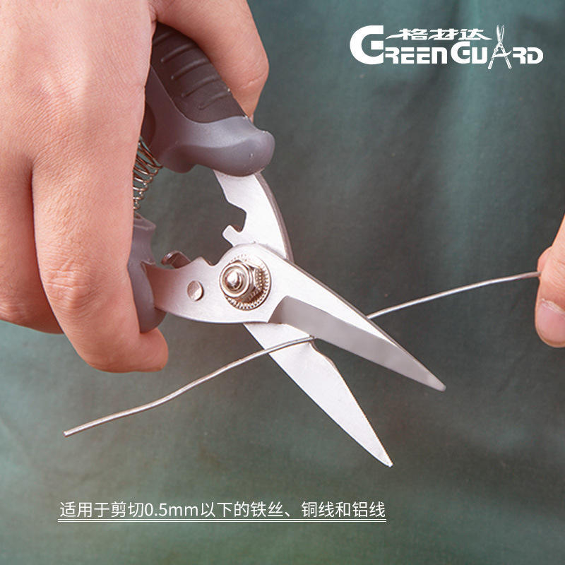 กรรไกรตัดแต่งกิ่งสแตนเลส Green Guard โครงสร้างแบบผีเสื้อสีเทา ใบมีดยาว 45.5 มม.