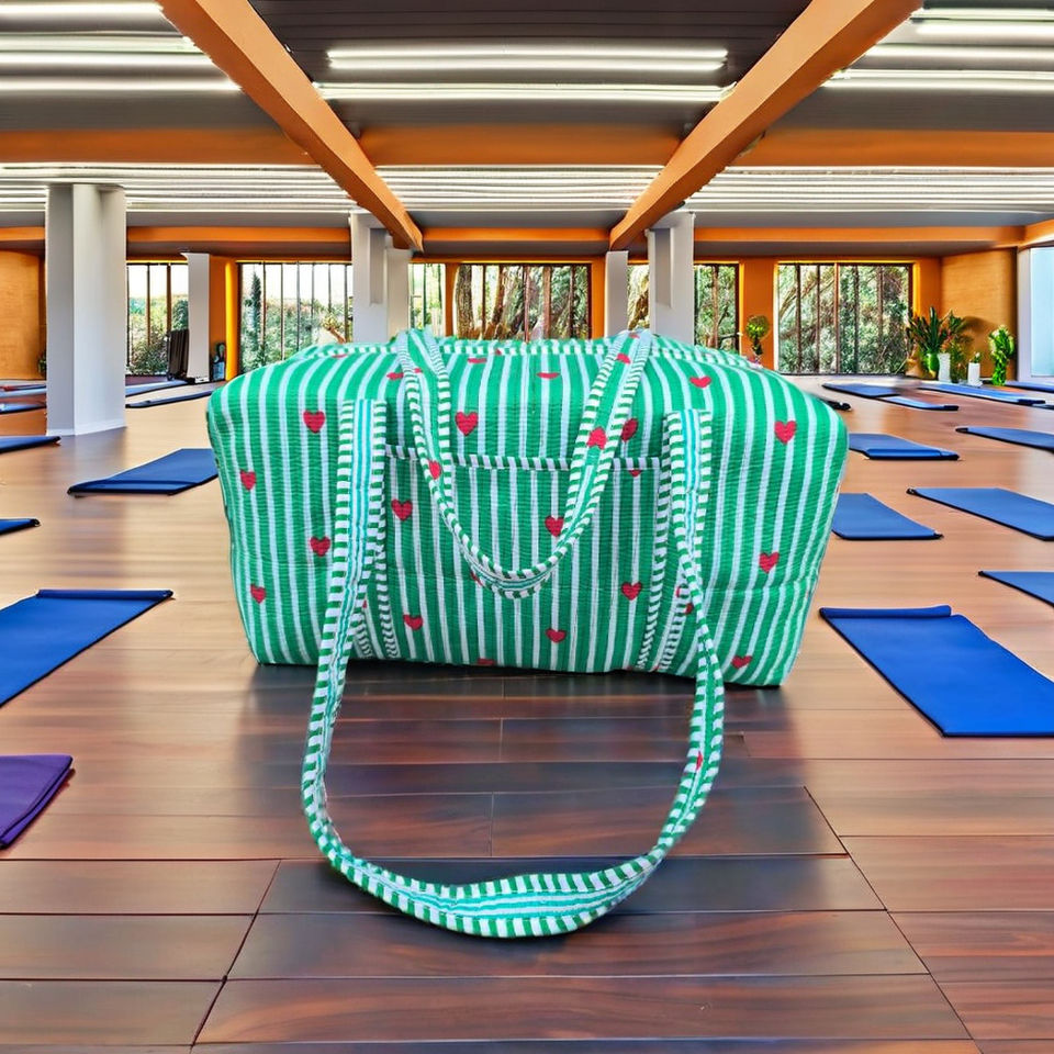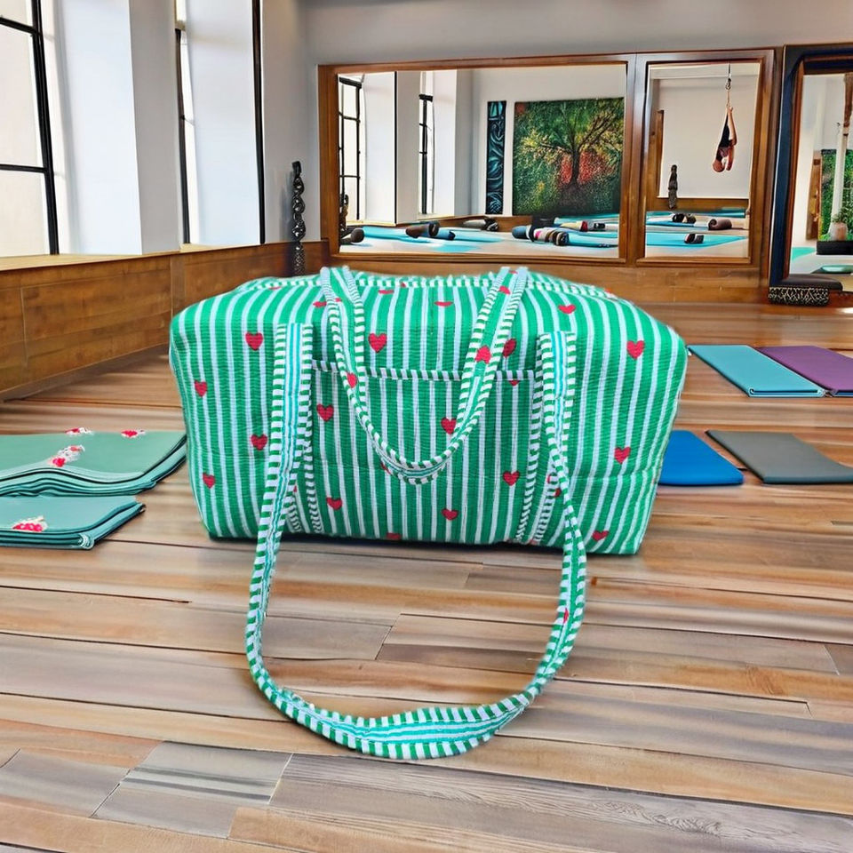 กระเป๋าเดินทางแบบสะพายไหล่ลายหัวใจสีเขียวสไตล์โบโฮ ทำด้วยมือ สำหรับทุกเพศ พร้อมซิป สีสันสดใส เป็นมิตรกับสิ่งแวดล้อม ความจุขนาดใหญ่