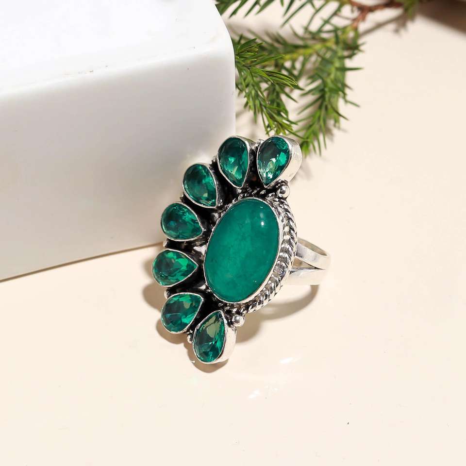แหวนเงินแท้ 925 ประดับพลอยสีเขียวหยกและอะพาไทต์ ดีไซน์ทันสมัยสำหรับผู้หญิงคริสเตียน เหมาะสำหรับงานแต่งงานและงานหมั้น