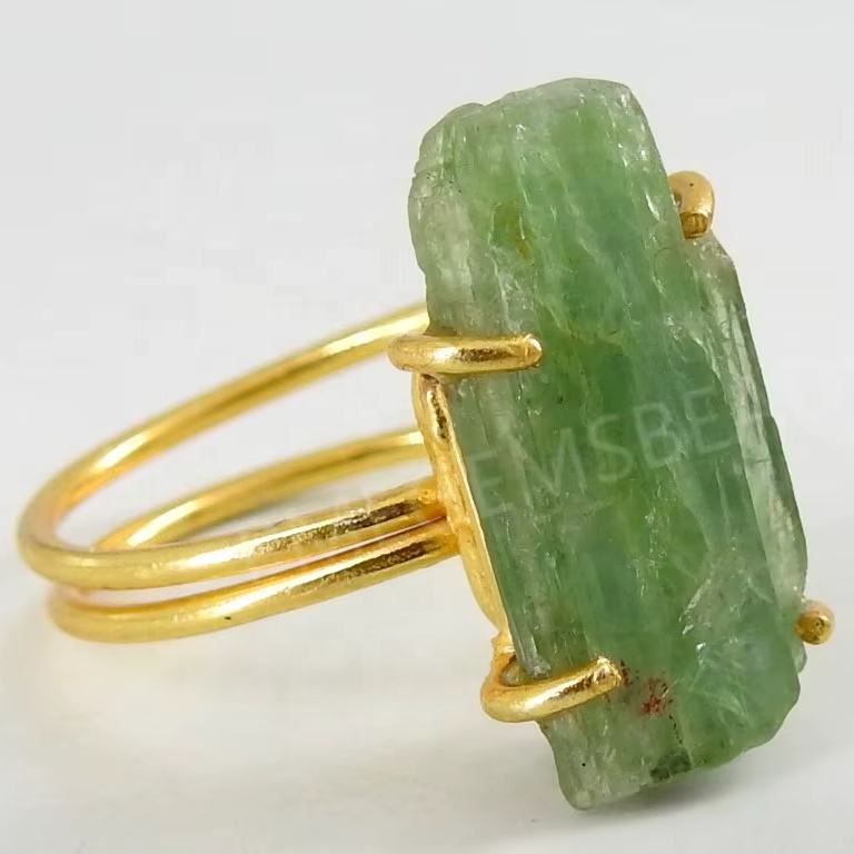 แหวนหุ้มทองประดับด้วยหินไคยาไนต์สีเขียวธรรมชาติแบบหยาบ หุ้มด้วยลวดทองแดง ของขวัญสำหรับงานแต่งงานหรืองานหมั้น เครื่องประดับแฟชั่น