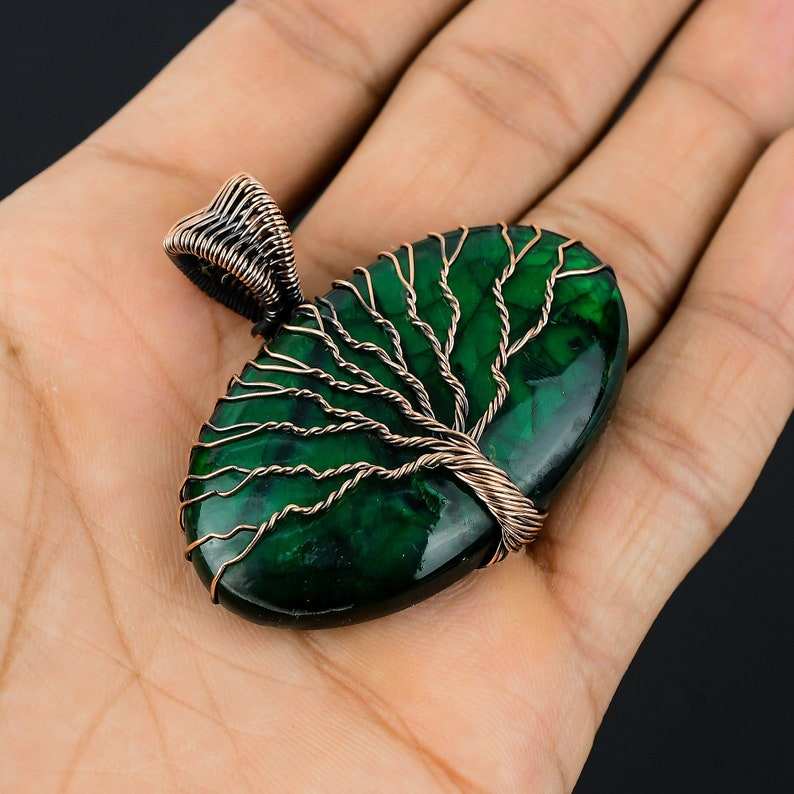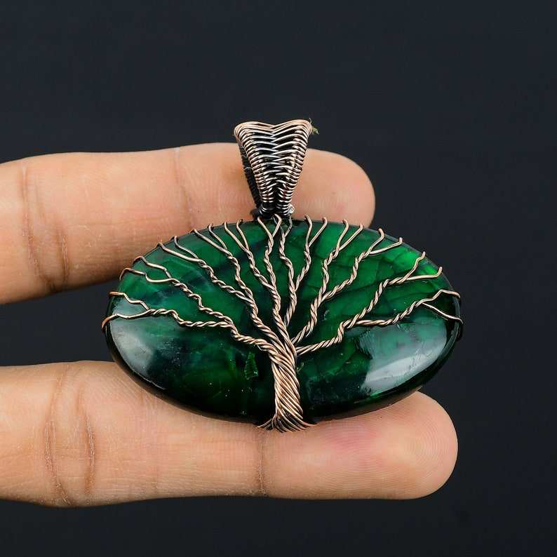 สีเขียวแลบราโดไรต์ชีวิตของต้นไม้ลวดตัดงานทองแดงออกแบบไม่ซ้ำใครสร้อยคอจี้ทำด้วยมือคนรักธรรมชาติมีทุกขนาดให้เลือก
