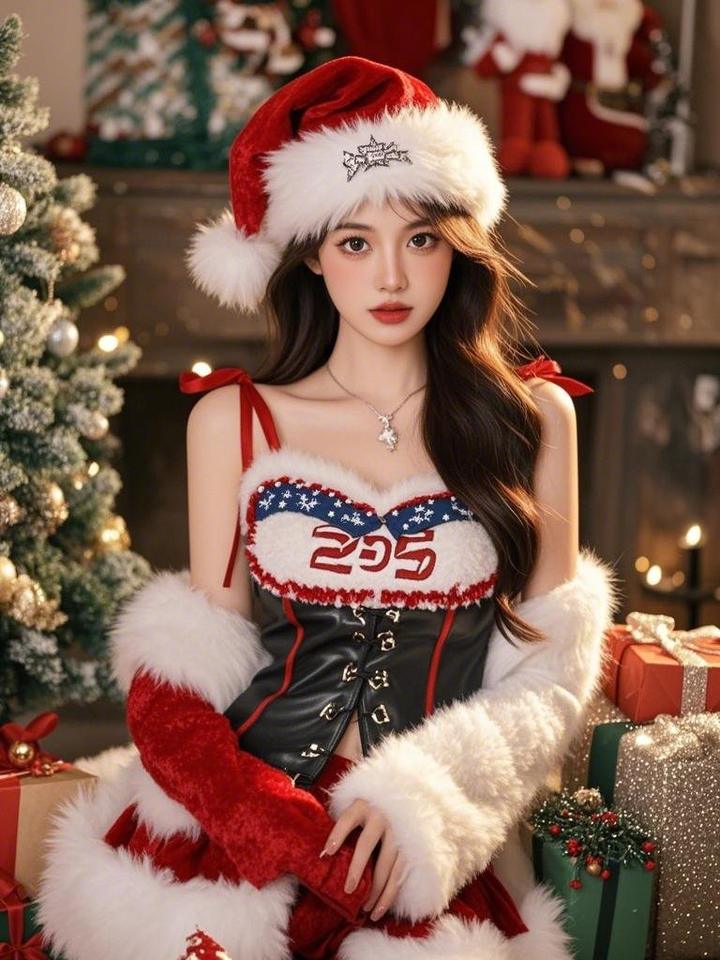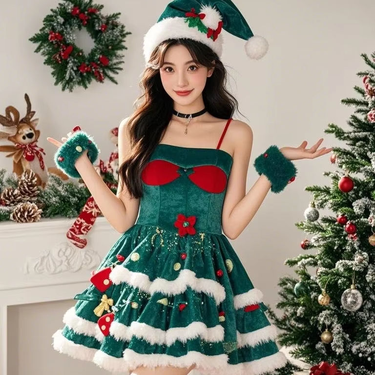 Green Ladies Role Play Christmas Clothing Female Sexy Christmas Elves Costumes Women's Xmas Santa Hat Set Dress