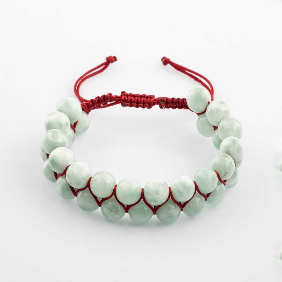 สร้อยข้อมือหินธรรมชาติลาลีมาร์สีเขียวขนาด 8 มม. แบบสองแถวถักด้วยเชือกมาคราเม่