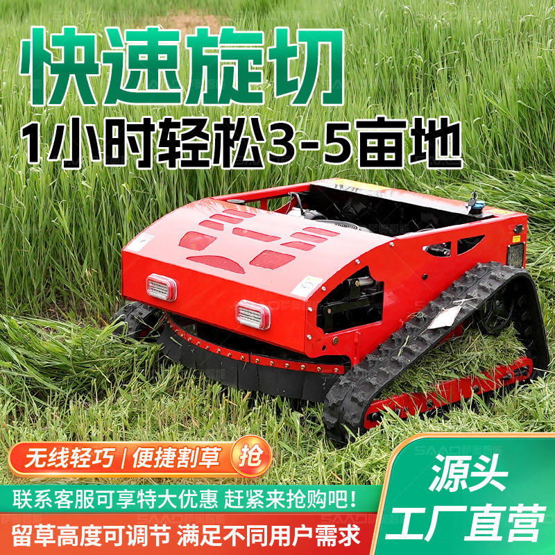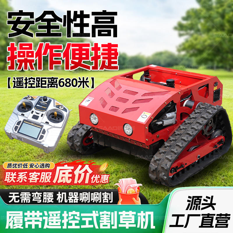 เครื่องตัดหญ้าแบบขับเคลื่อนด้วยตัวเอง ควบคุมระยะไกล สำหรับสนามหญ้าสีเขียว ใช้ในสวนผลไม้ กำจัดวัชพืช