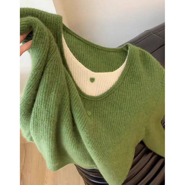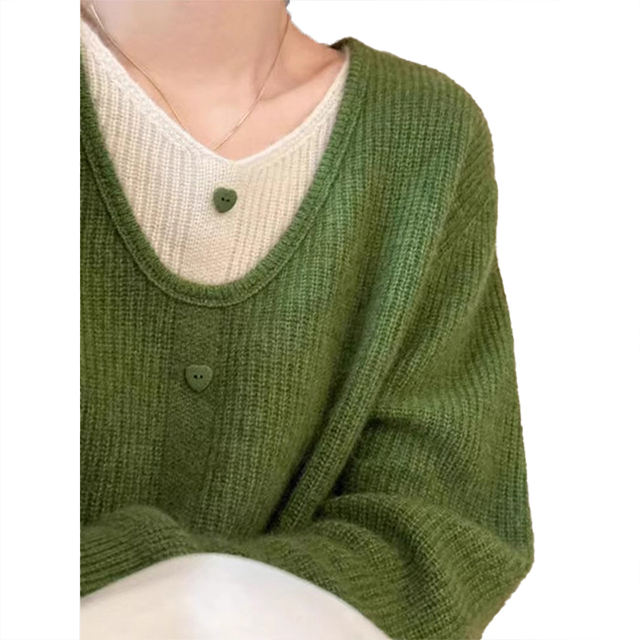 เสื้อสเวตเตอร์ไหมพรมพิมพ์ลายสีเขียวสไตล์ลำลองแบบเลเยอร์ ทรงหลวม สวมใส่สบาย ดีไซน์หรูหรา เนื้อผ้าหนา สำหรับผู้หญิง ฤดูใบไม้ร่วง ฤดูหนาว สามารถปรับแต่งได้