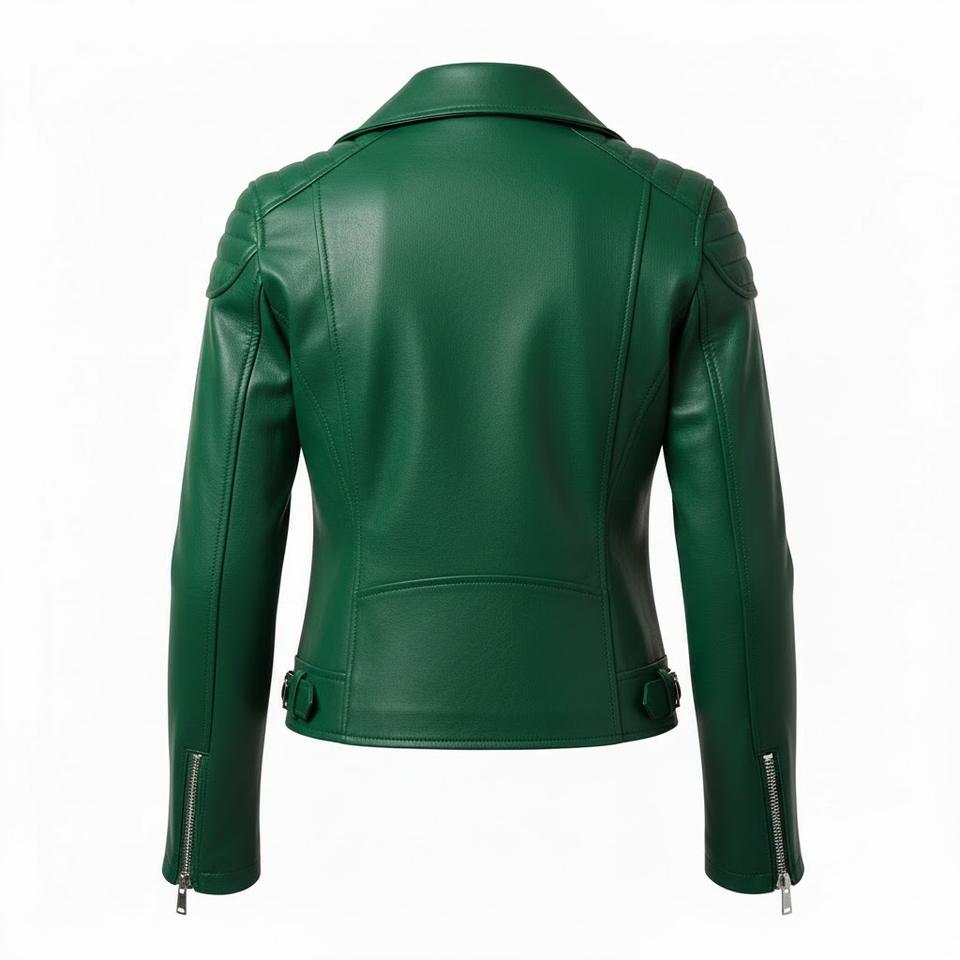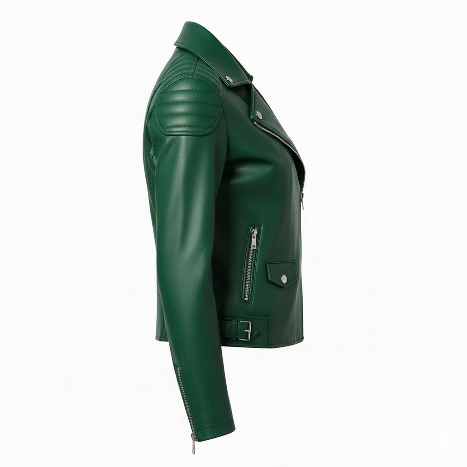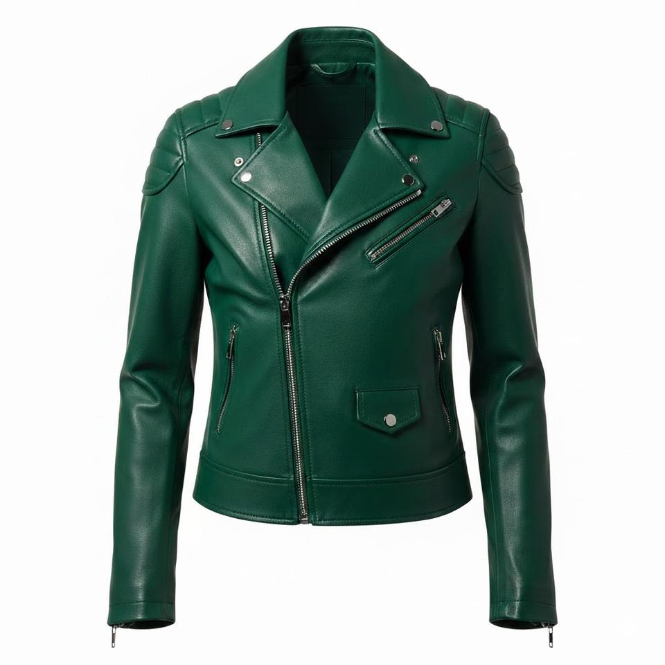 เสื้อแจ็คเก็ตมอเตอร์ไซค์หนังสีเขียว สั่งทำตามแบบ ขายส่งจำนวนมาก ราคาโรงงาน สไตล์ไบค์เกอร์ เสื้อโค้ทแฟชั่นผู้หญิง บริการ OEM