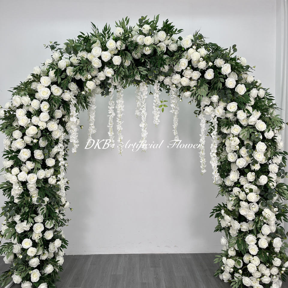 ดอกไม้ประดิษฐ์ตกแต่งซุ้มแถวงานแต่งงานสีเขียวและเขียวขจีดอกไม้ทางเดินใบไม้สีเขียวดอกไม้ประดิษฐ์