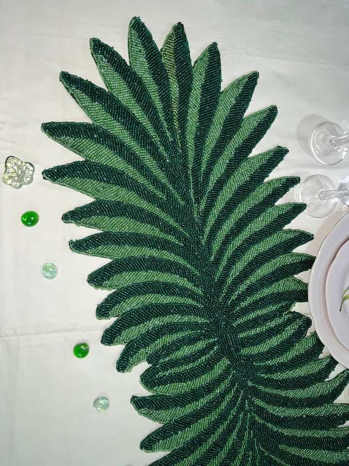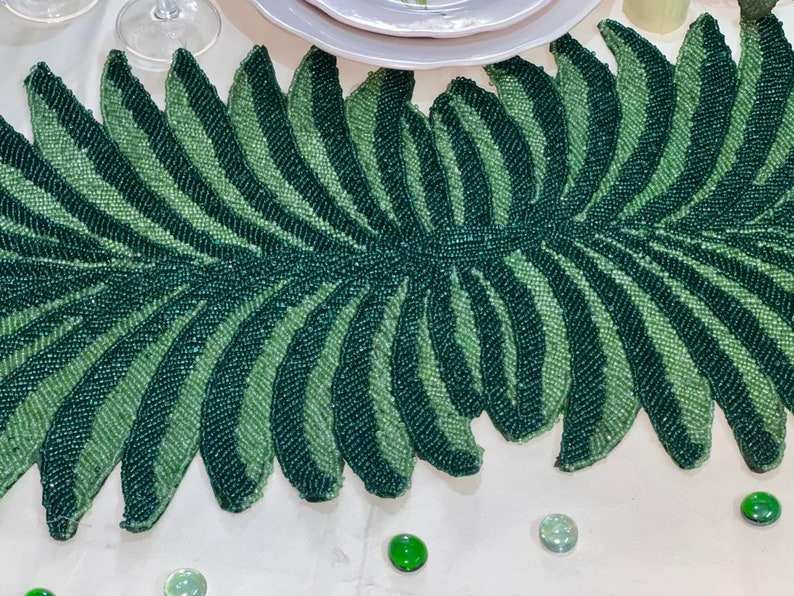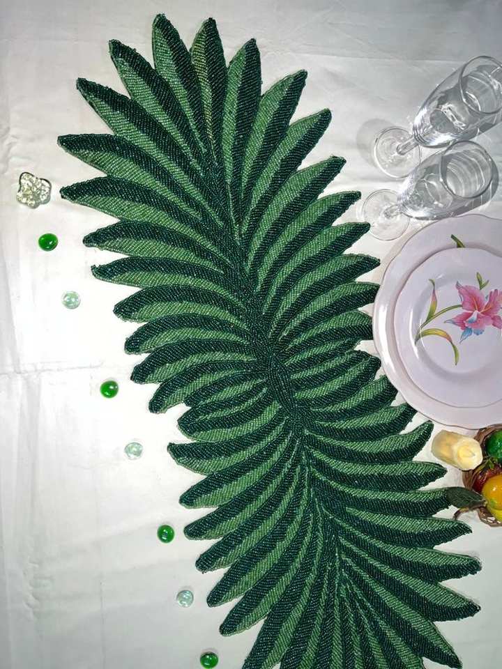 Green Leaves Floral Handmade Knitted Eco-Friendly Customizable Size Table Runner Table Topper Spring Tableware