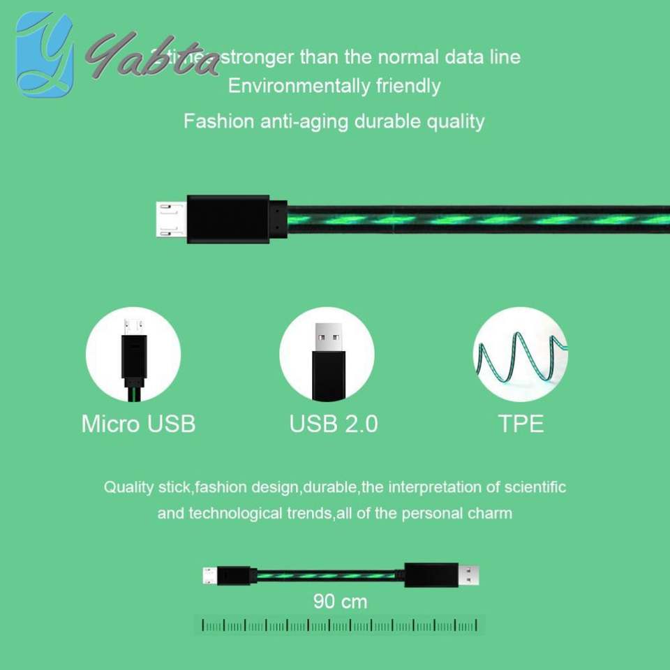 ไฟสีเขียวสำหรับสายชาร์จ iPhone สายชาร์จข้อมูลเรืองแสงในที่มืด