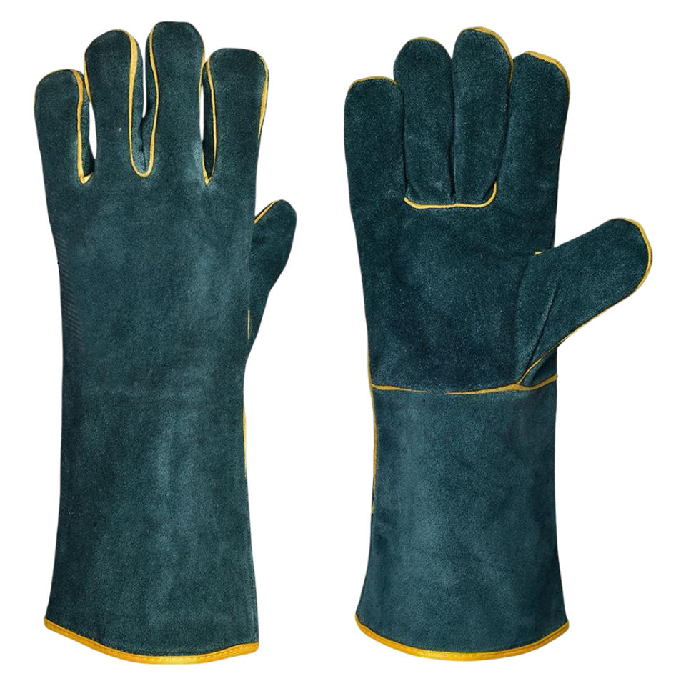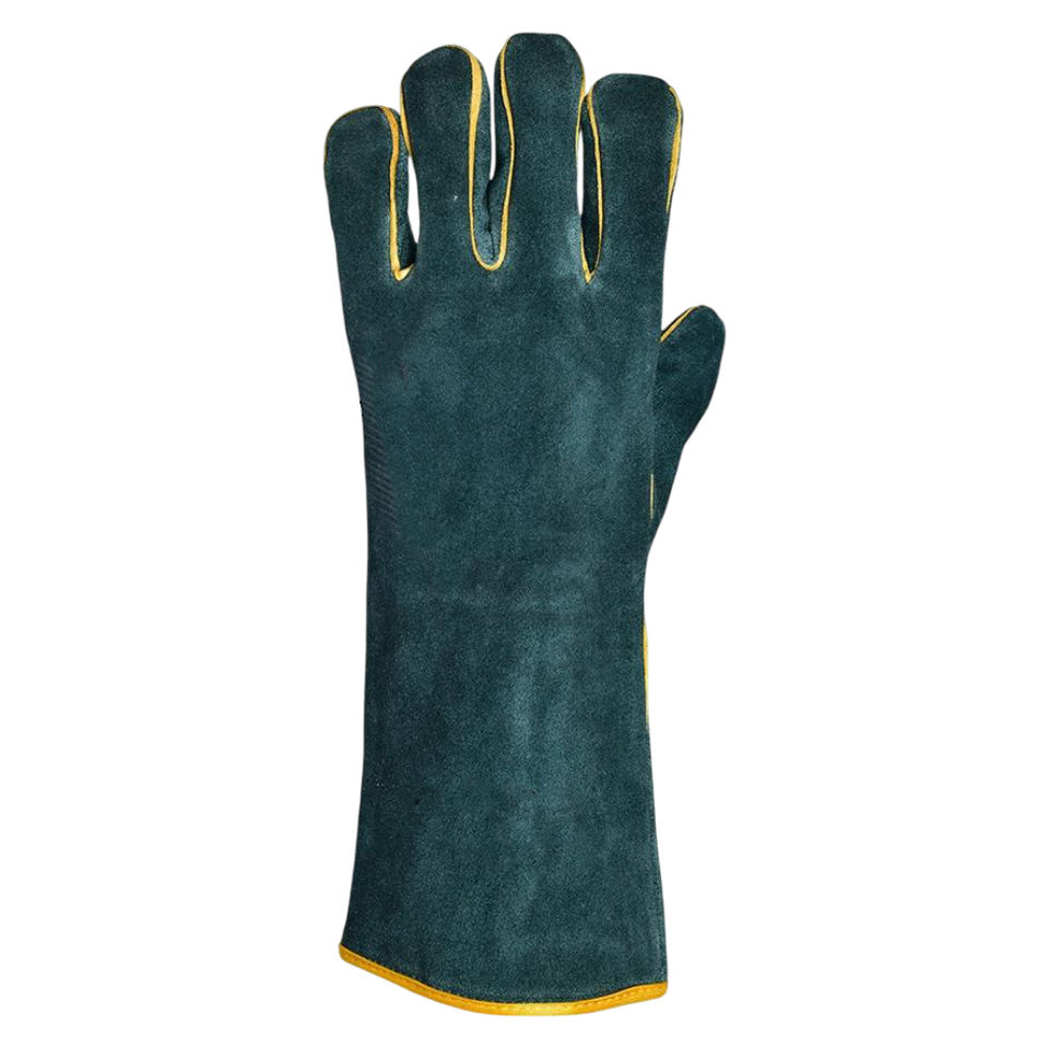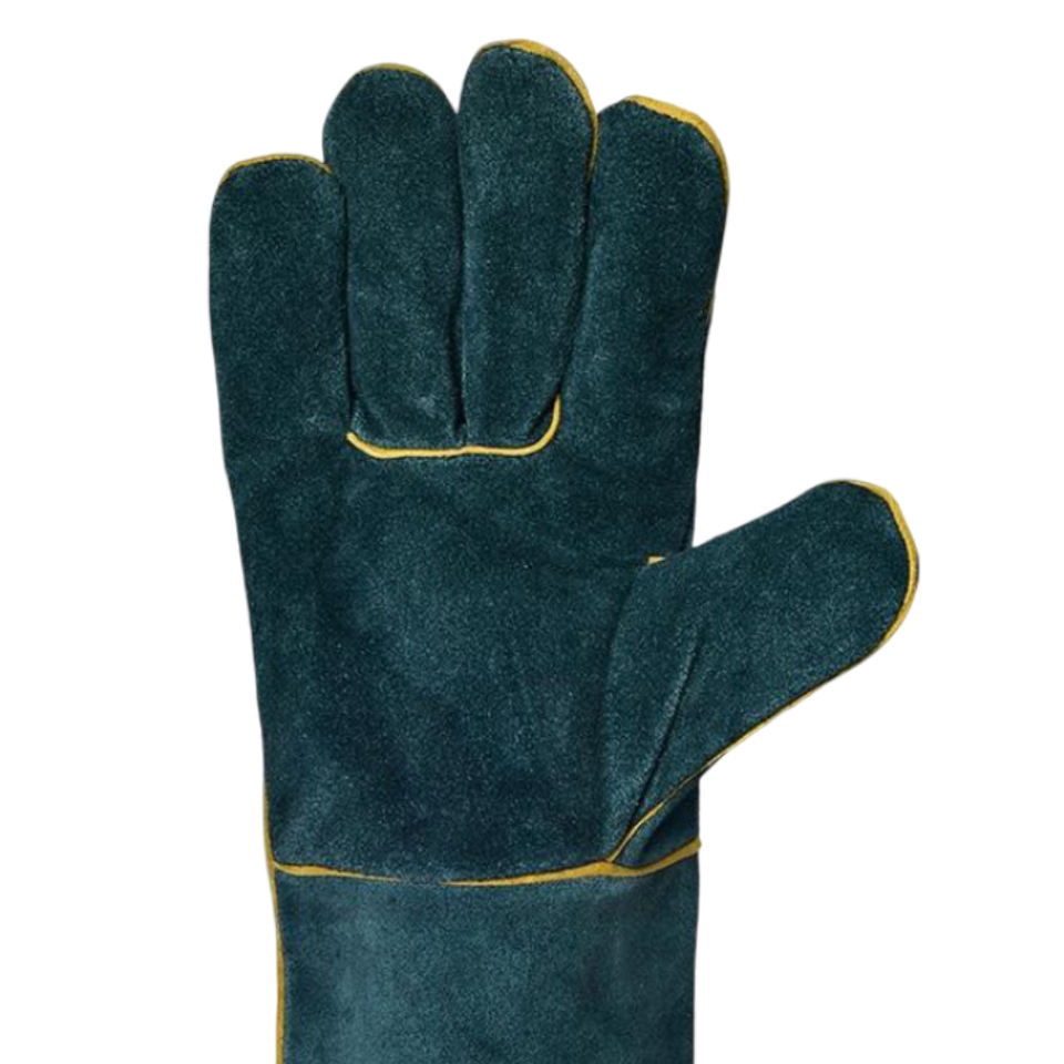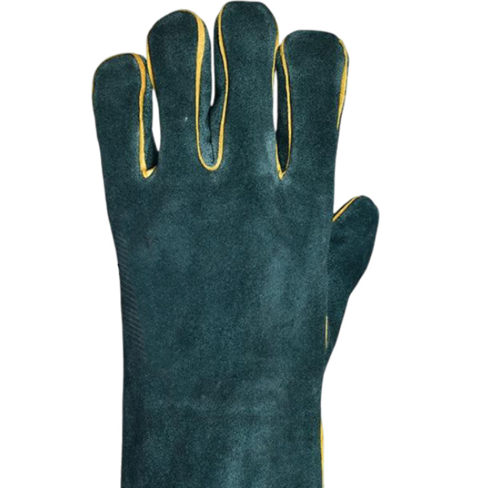 ถุงมือเชื่อมหนังวัวสีเขียวแบบแยกเป็นชิ้นถุงมือเชื่อมหนังวัวกันความร้อนปรับโลโก้ได้ตามต้องการ