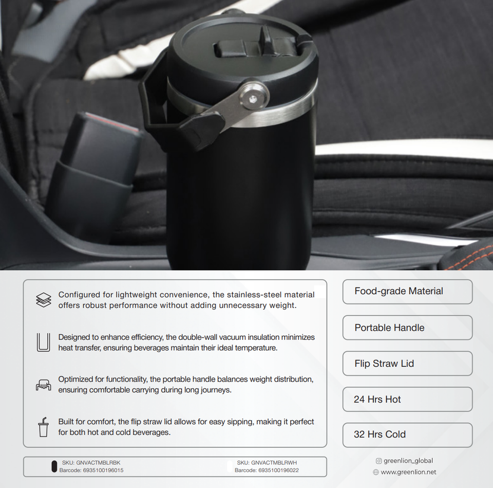 Green Lion 900ml Premium Insulated Stainless Steel Vacuum Tumbler & Thermos Portable Sports Flask with Lids 12oz Capacity
