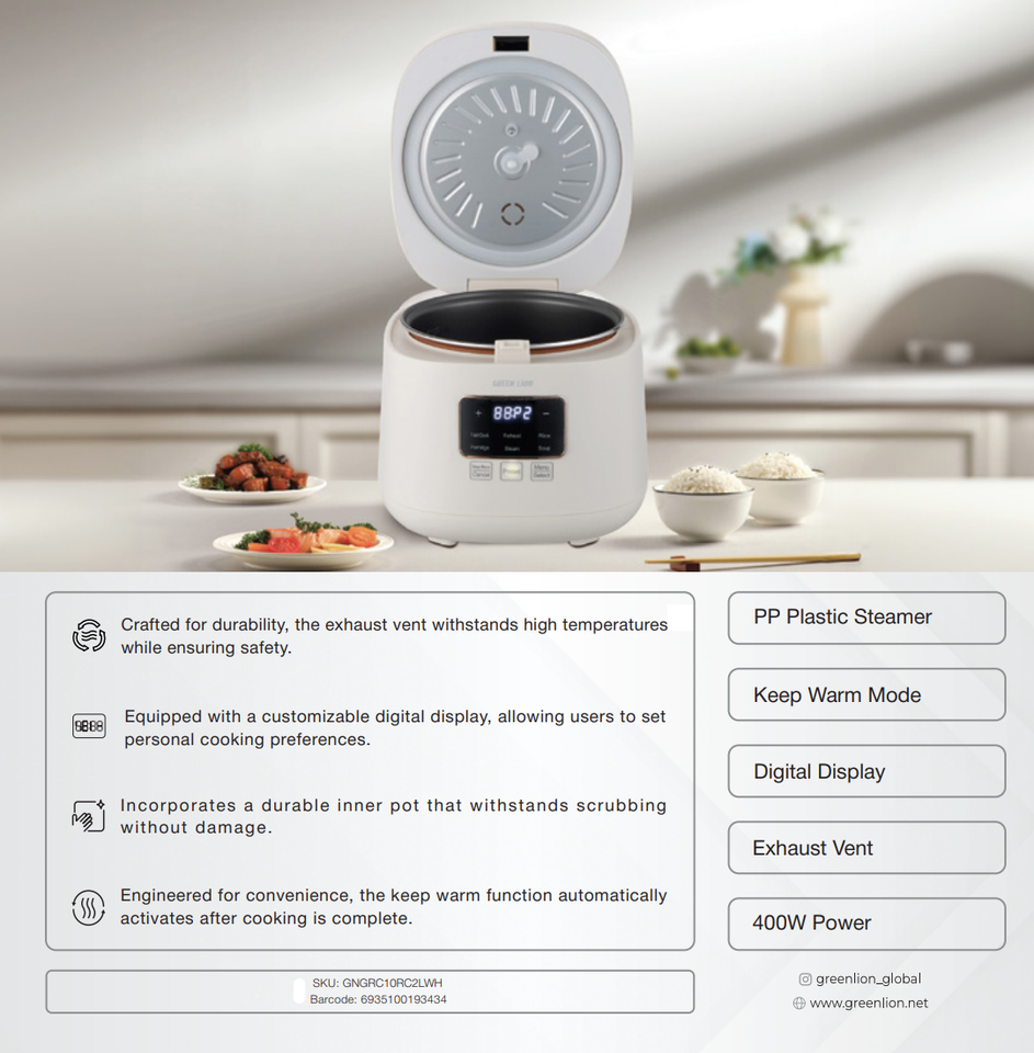 หม้อหุงข้าวระบบดิจิทัล400W Green Lion GRC-10หม้อหุงข้าวอัจฉริยะความจุ2L สำหรับโรงแรม