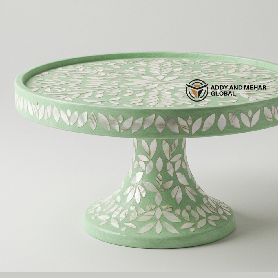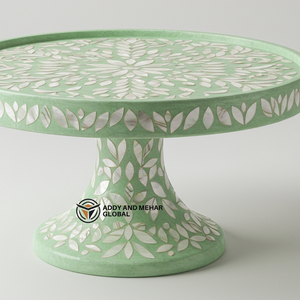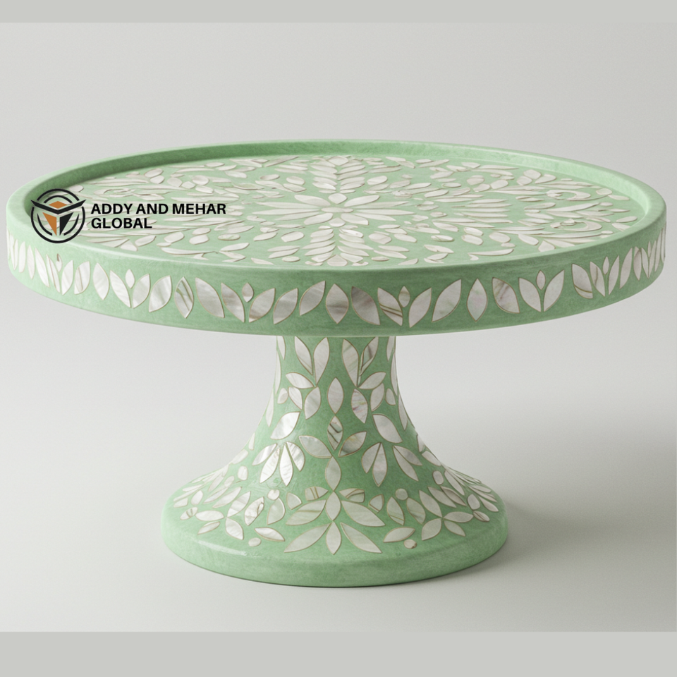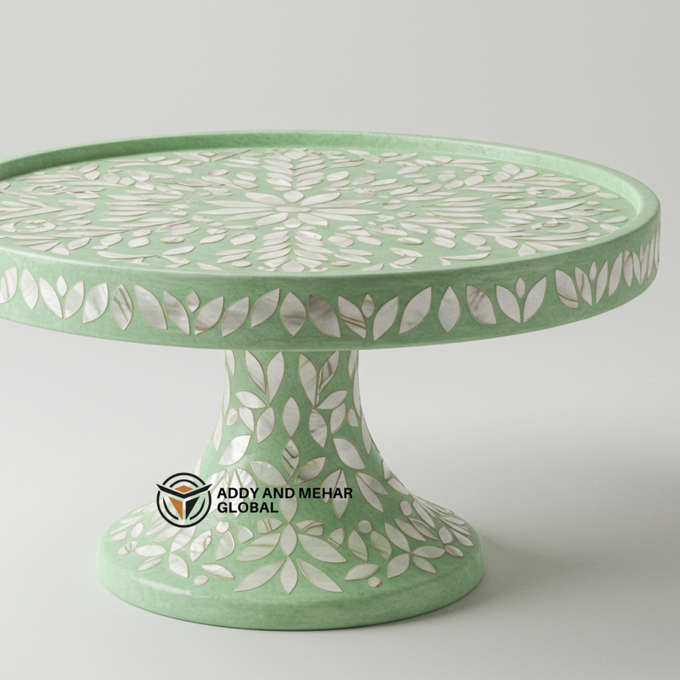 แท่นวางเค้กแบบฝังไม้ถูพื้นสีเขียวทำด้วยมือสำหรับวางเค้กและขนมหวาน