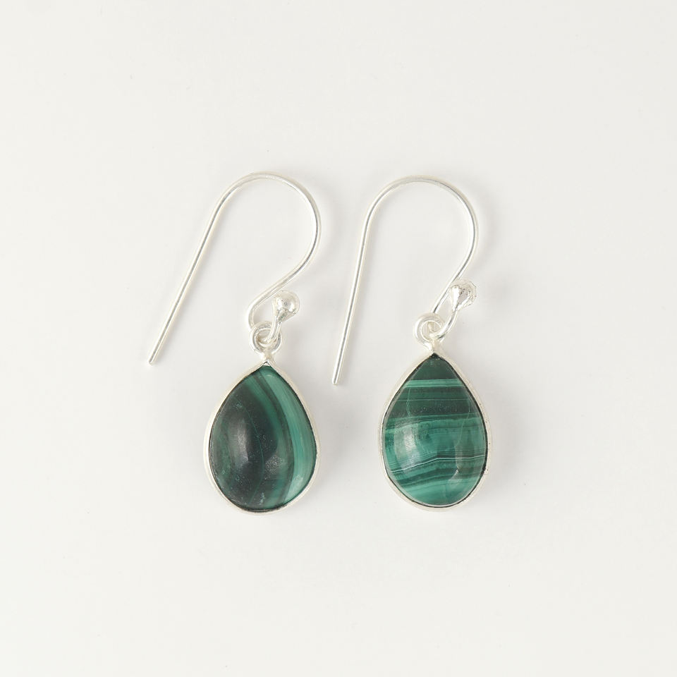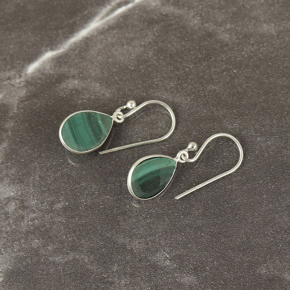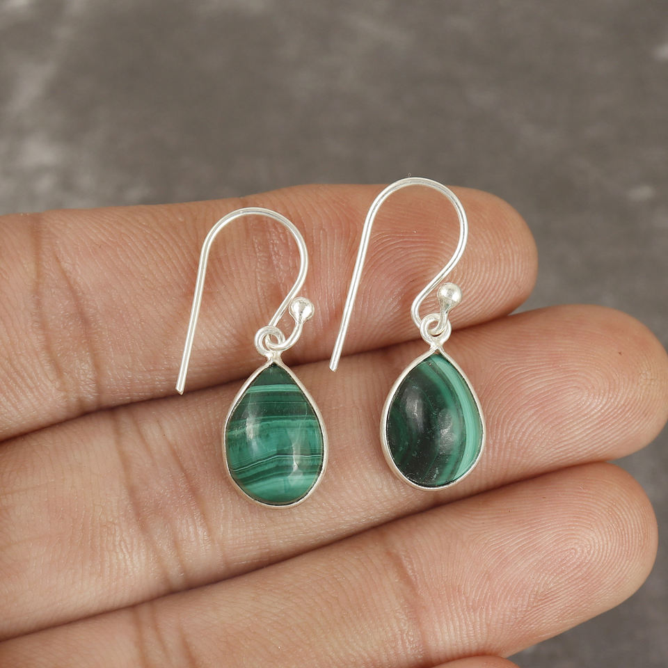 ต่างหูห้อยมาลาไคต์มรกตสีเขียวต่างหูระย้าเงินแท้แบบห้อย