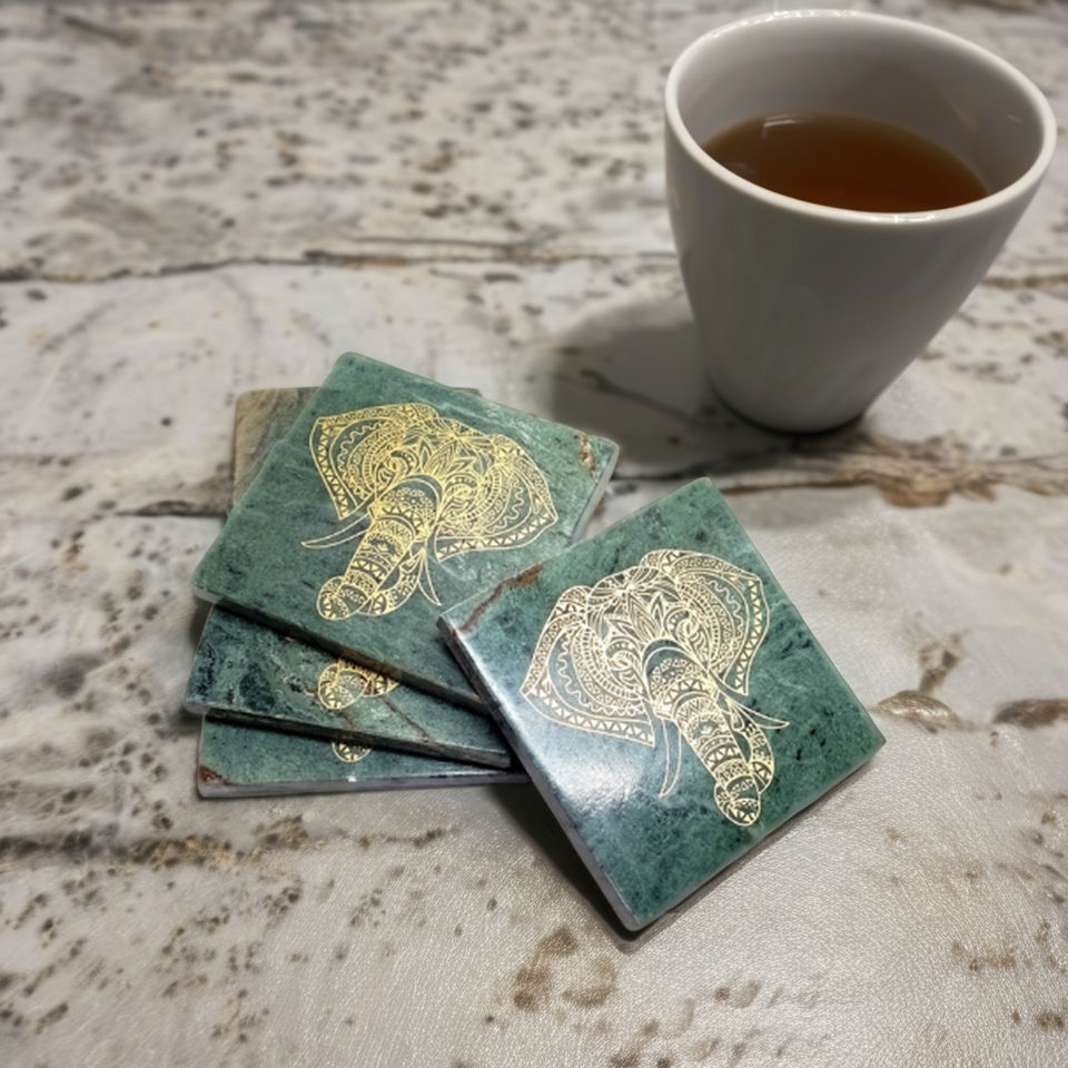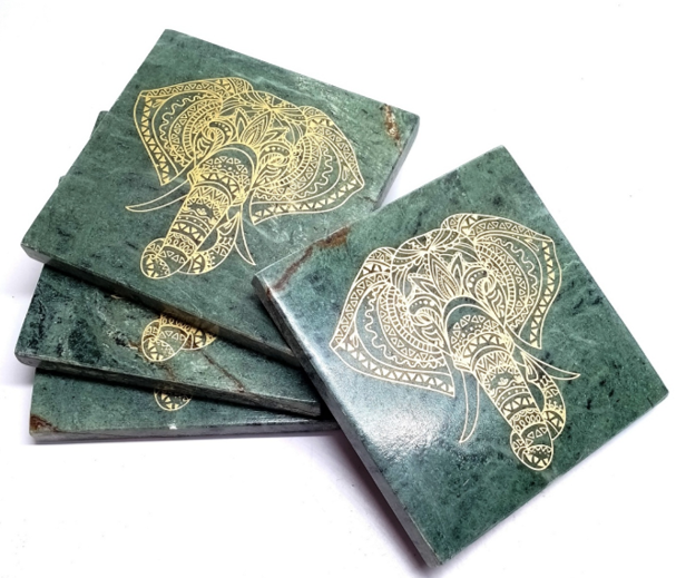 ชุดจานรองแก้วหินอ่อนสีเขียวทำมือ 4 ชิ้น พร้อมงานฝีมือหินขัดเงาเลียนแบบโบราณสำหรับตกแต่งบ้าน