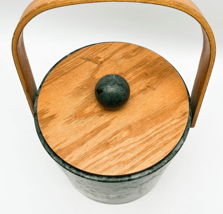 ถังน้ำแข็งหินอ่อนสีเขียวพร้อมดีไซน์ชั้นนำทำจากไม้อุปกรณ์ทำเครื่องดื่มสำหรับบาร์