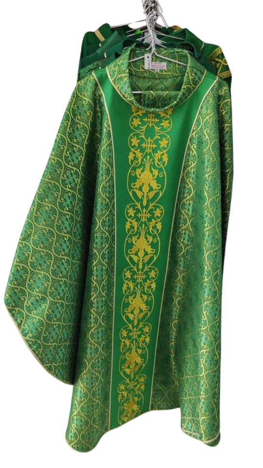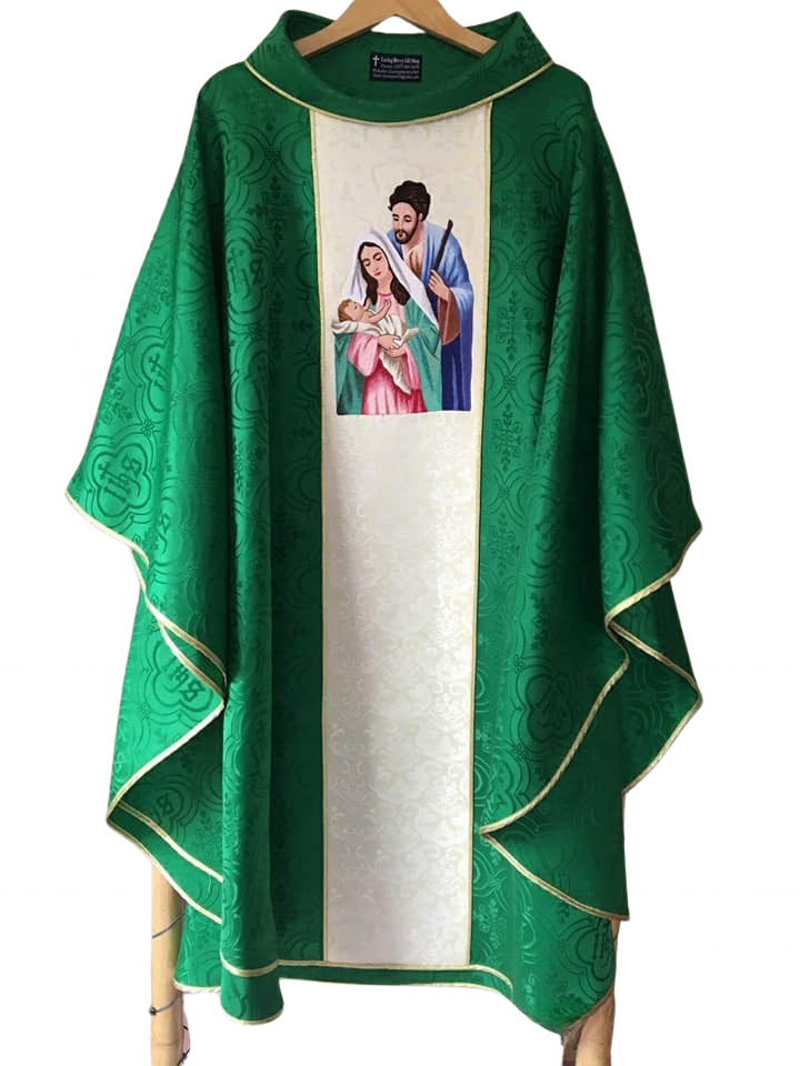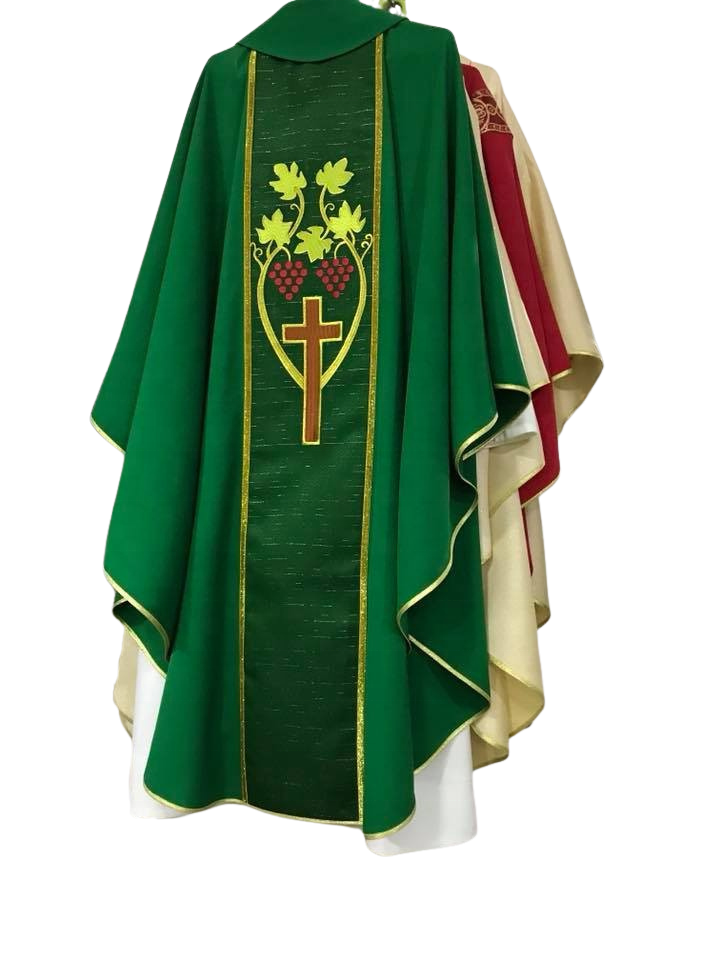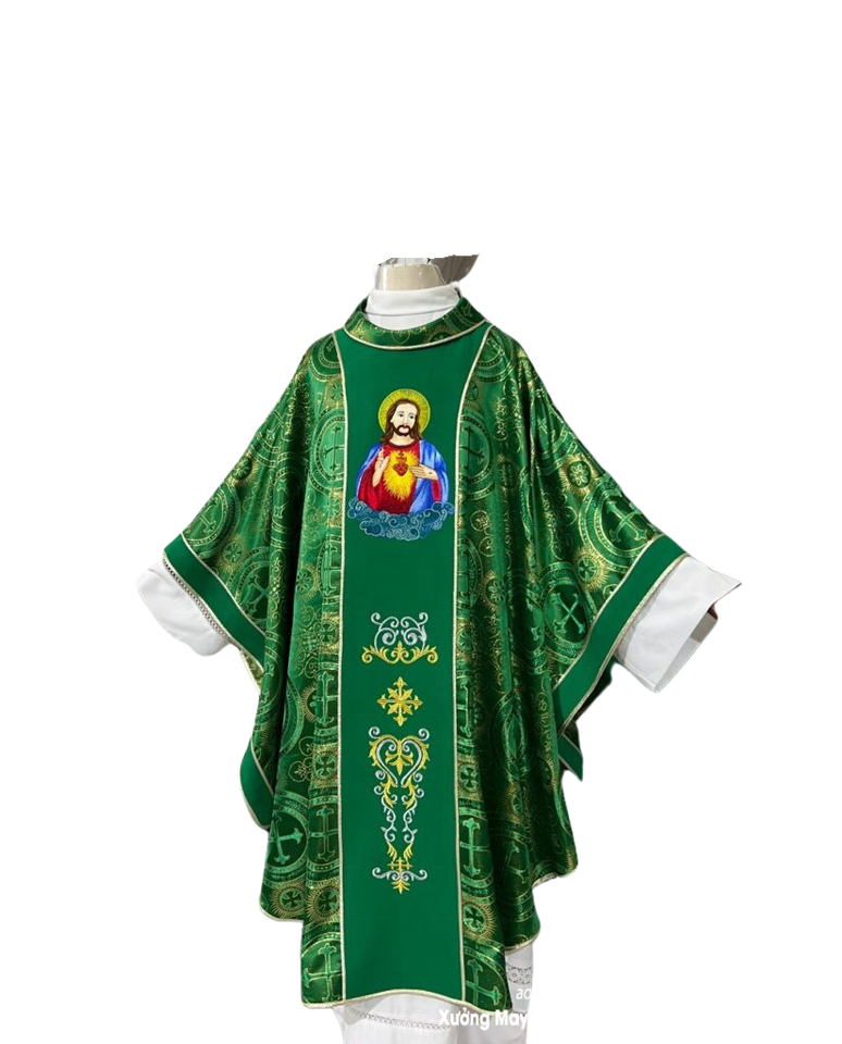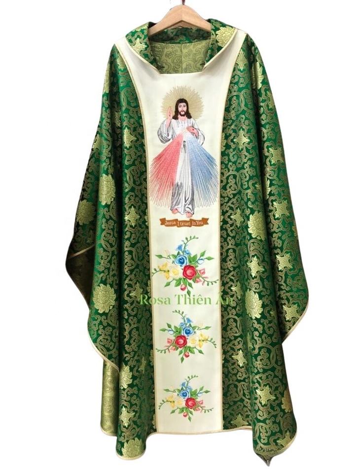 ชุดบาทหลวงสีเขียวมันวาว ผ้าโพลีเอสเตอร์ ปักลายทอง พร้อมผ้าคลุมไหล่ ใส่สบาย นุ่ม ทุกฤดู
