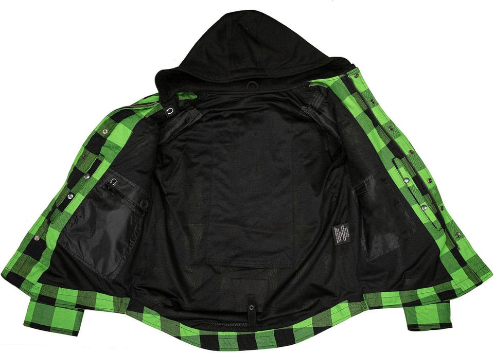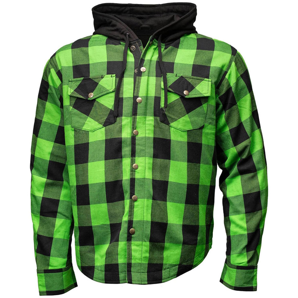 เสื้อเชิ้ตผู้ชายลายสก็อตสีเขียวแบบนักขี่มอเตอร์ไซค์ ผ้าฟลานเนล กันลม ไซส์ใหญ่ พร้อมแผ่นเกราะ CE เสริมใยอะรามิด ยี่ห้อ GK Leather Industries