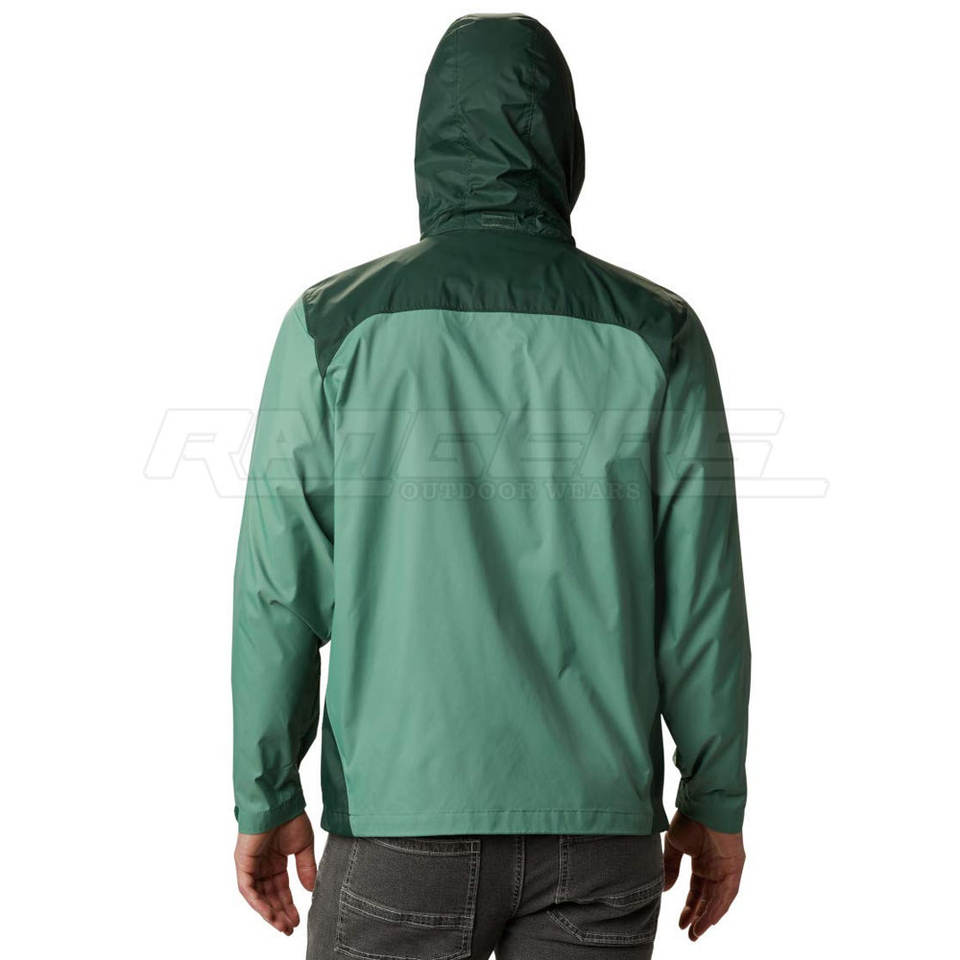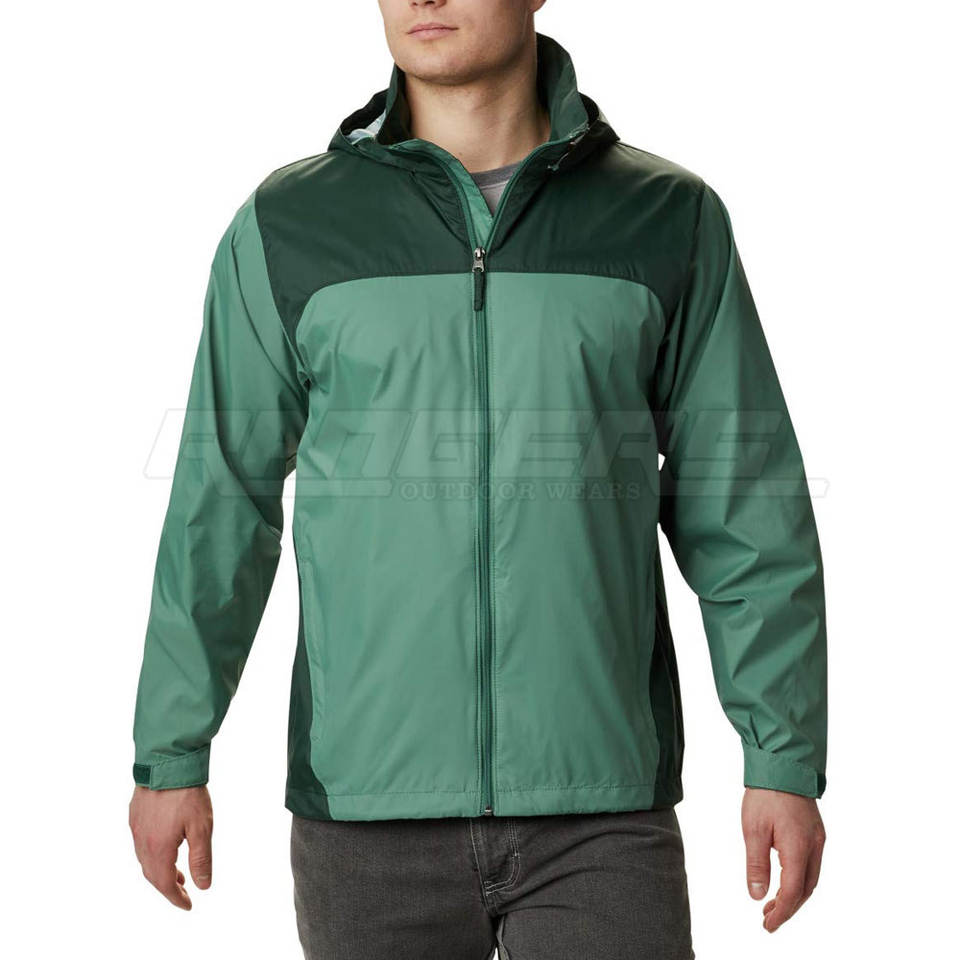 เสื้อแจ็กเก็ตกันฝนสำหรับผู้ชายสีเขียวพร้อมฮู้ดเสื้อแจ็คเก็ตกลางแจ้งปรับโลโก้ได้ตามต้องการ